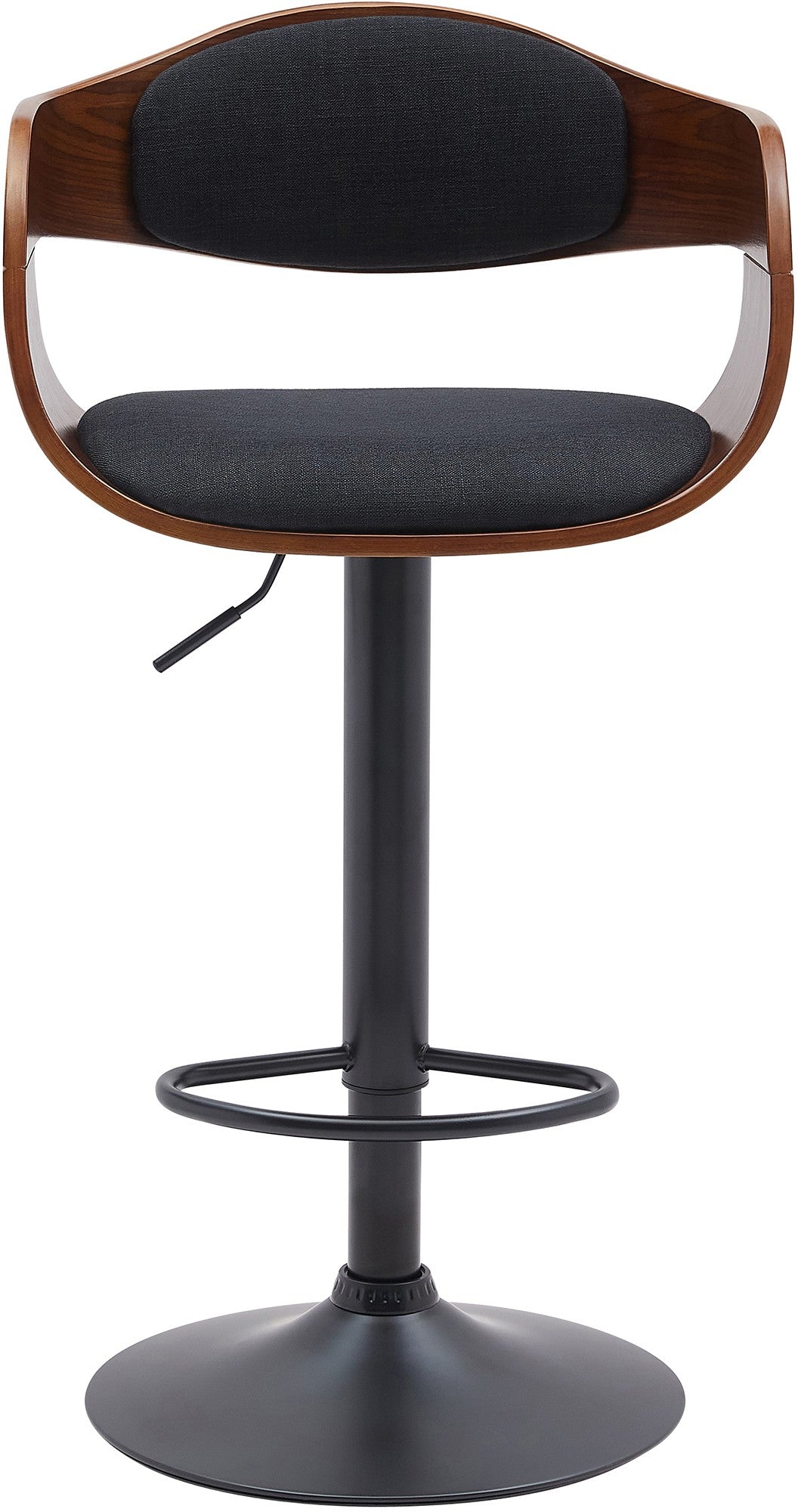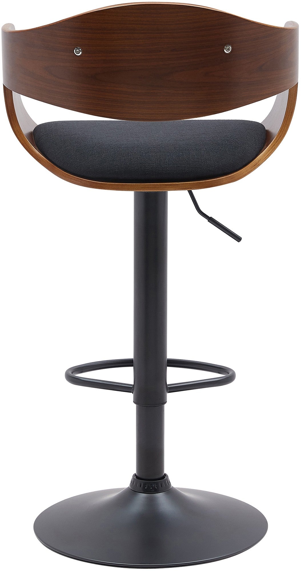 Tabouret de bar x1 design scandinave en tissu noir et structure en bois noyer pieds métal noir 10_0005038