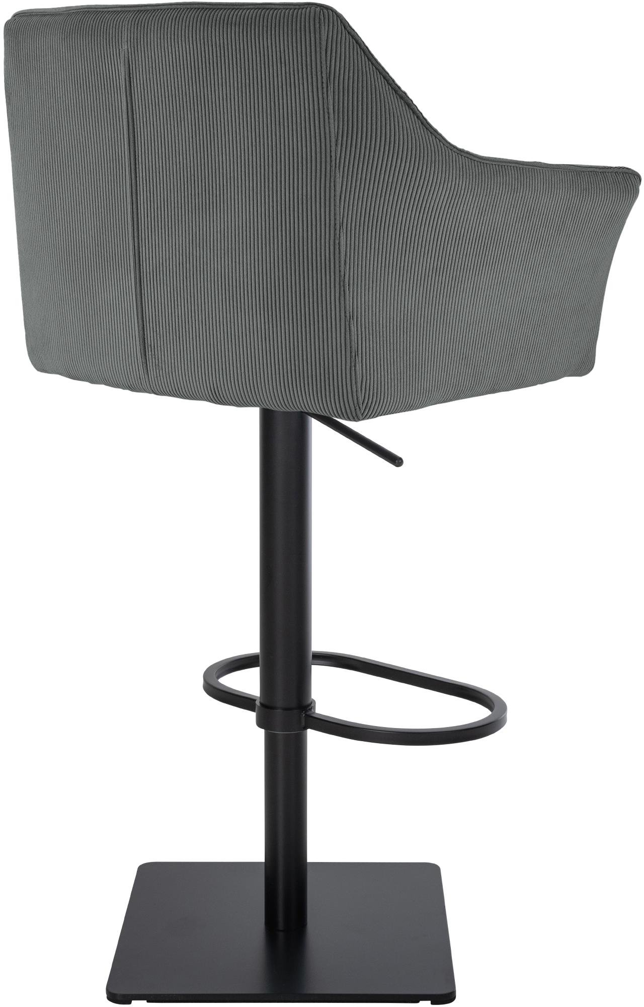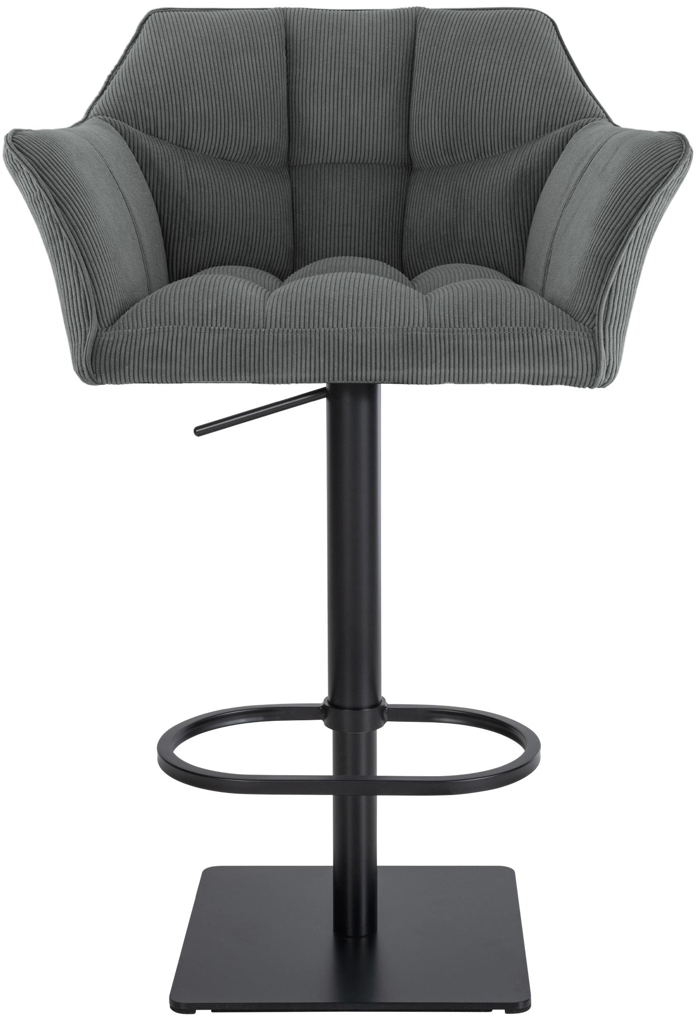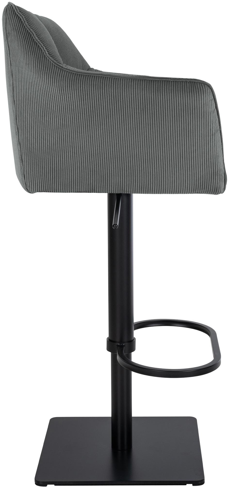 Tabouret de bar x1 réglable en velours côtelé gris foncé assise enveloppante capitonnée et avec base carrée en métal noir 10_0006121