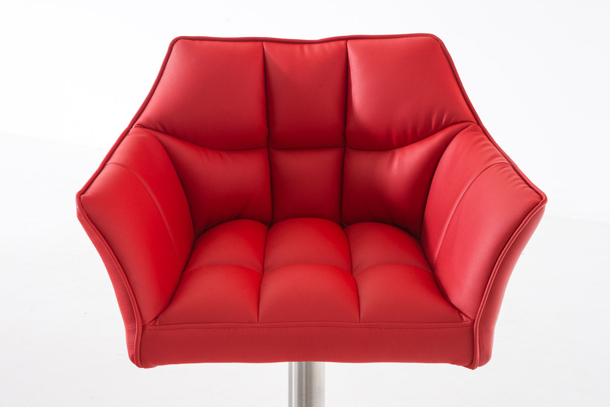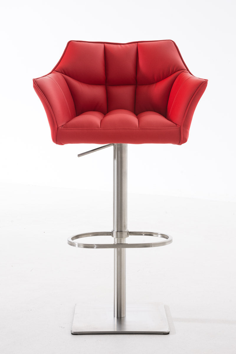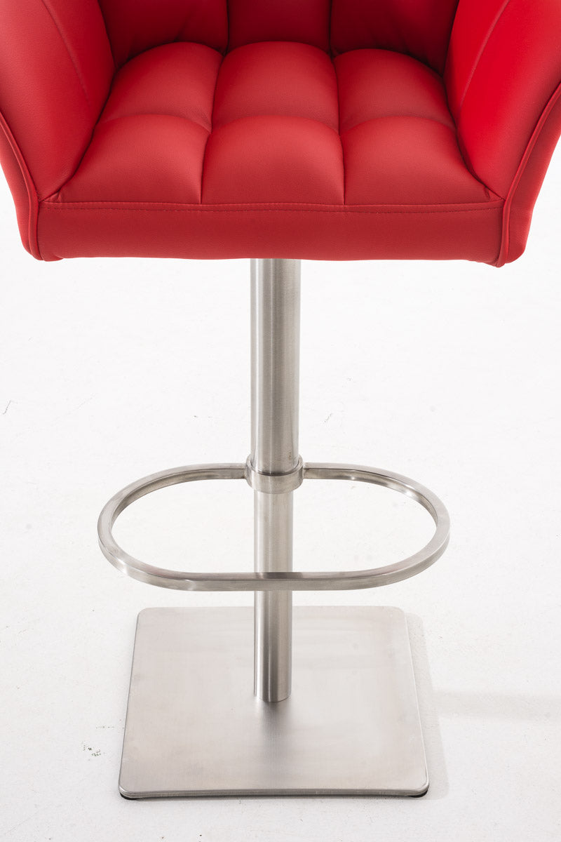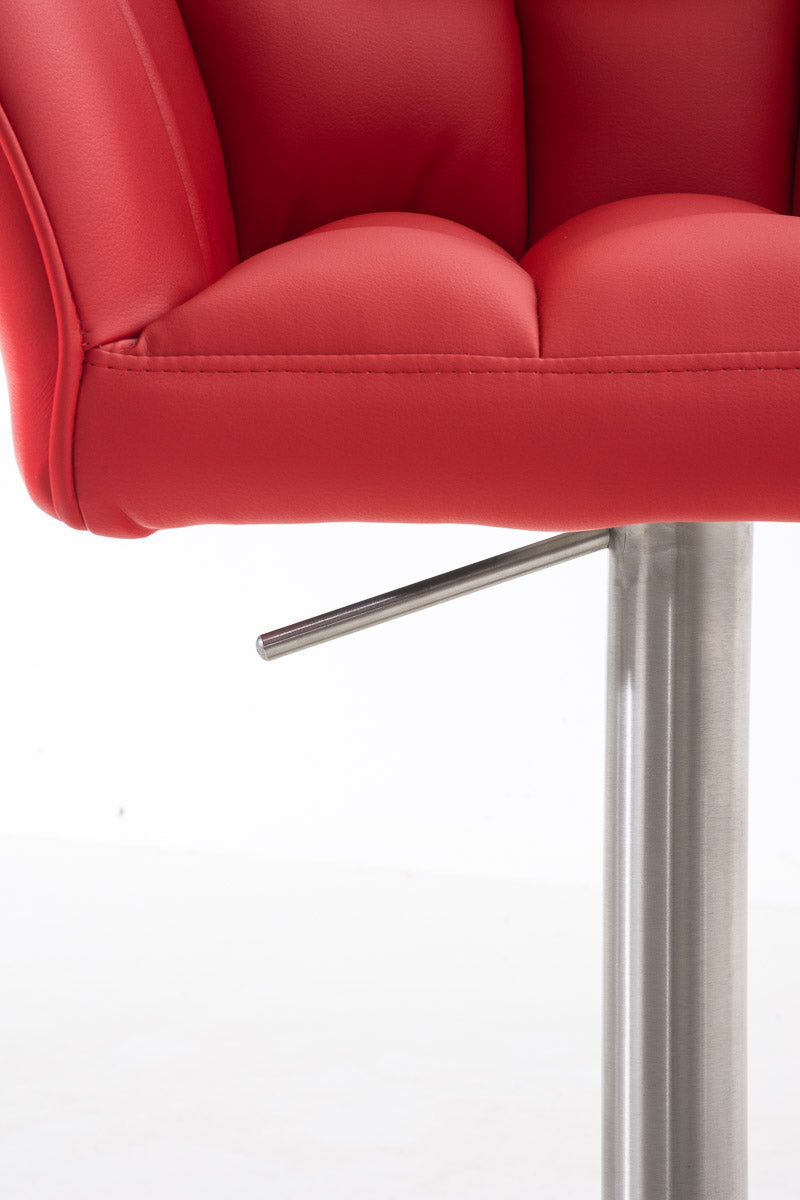 Tabouret de bar x1 réglable en similicuir rouge assise enveloppante capitonnée avec base carrée en acier inoxydable 10_0006343