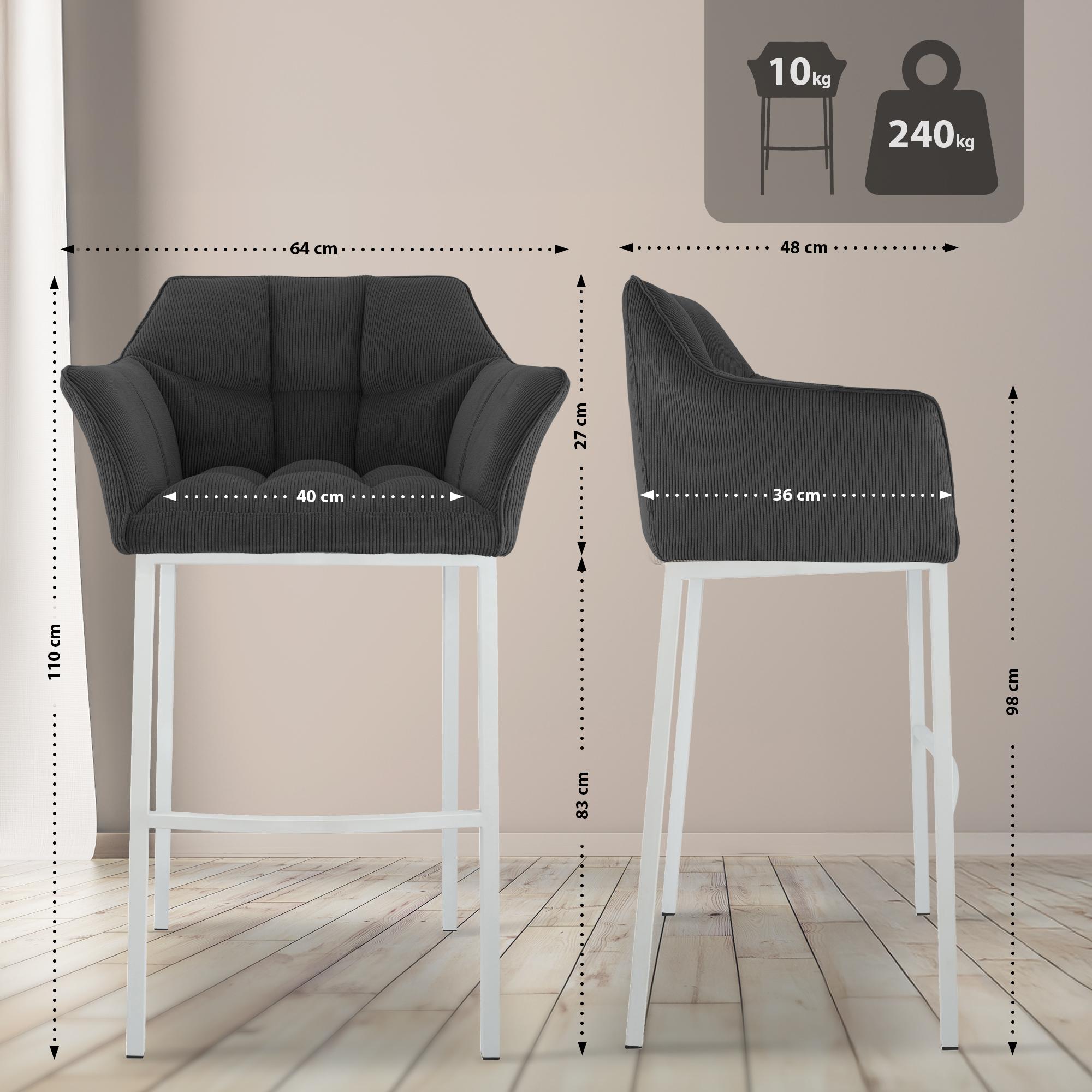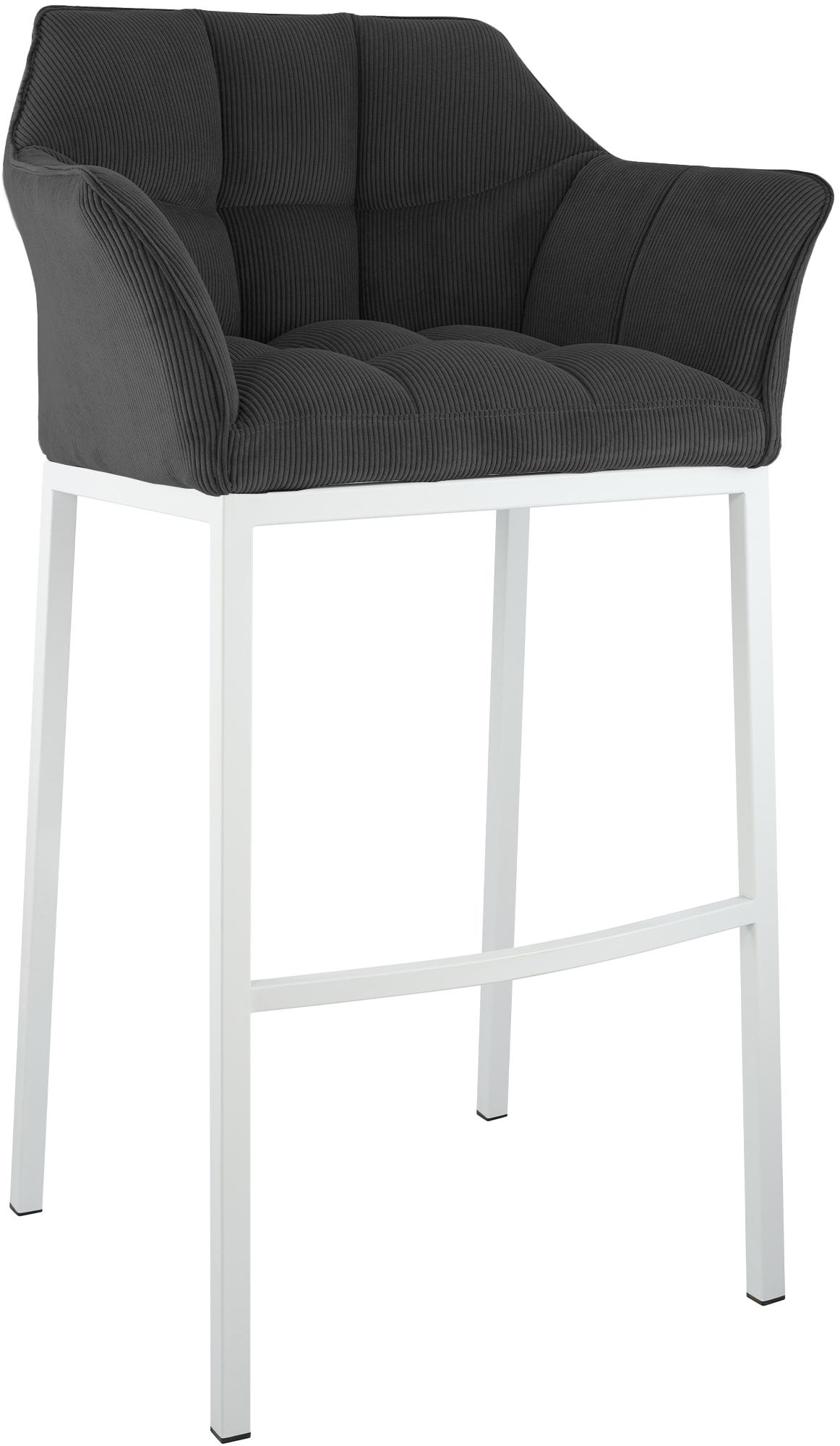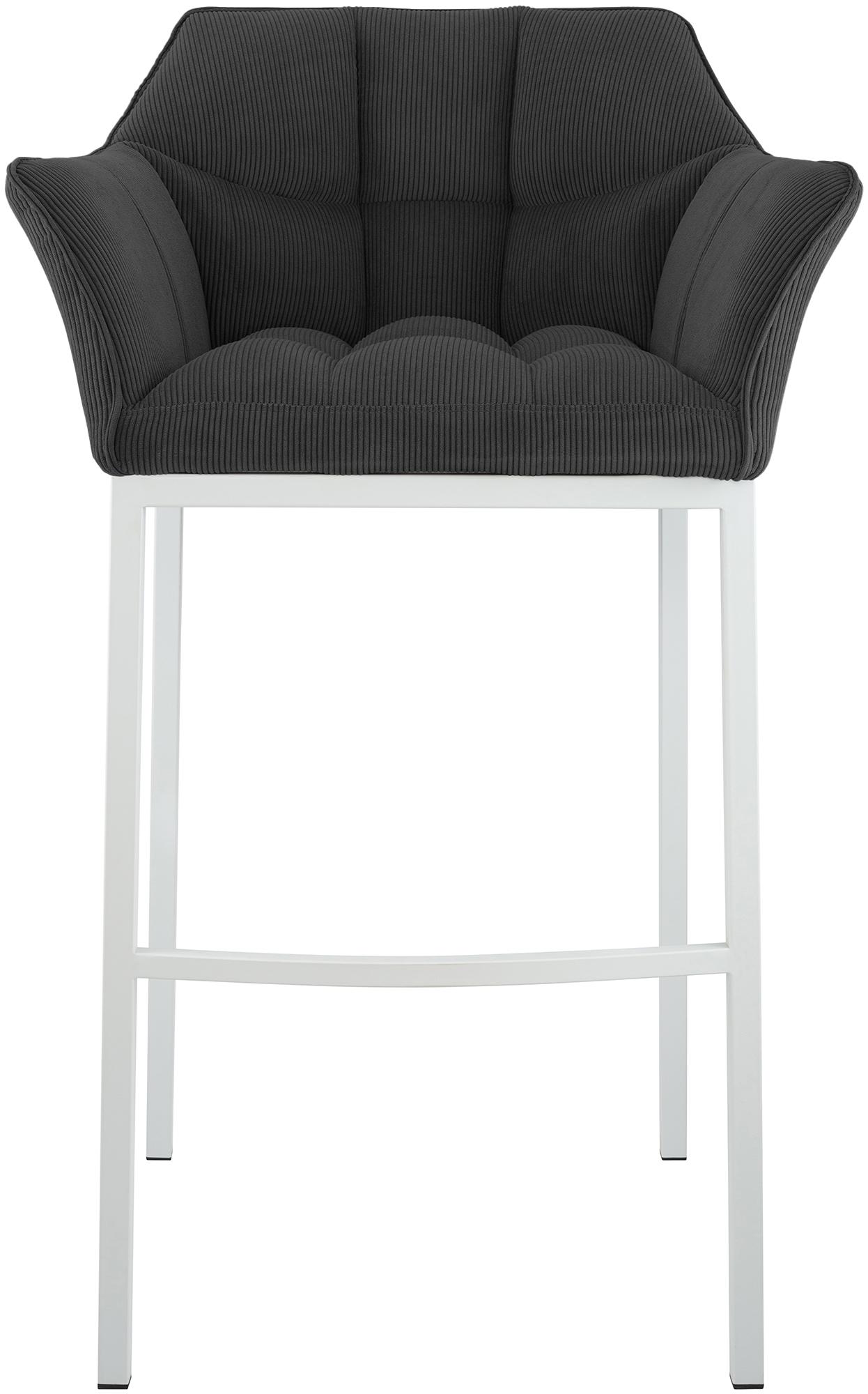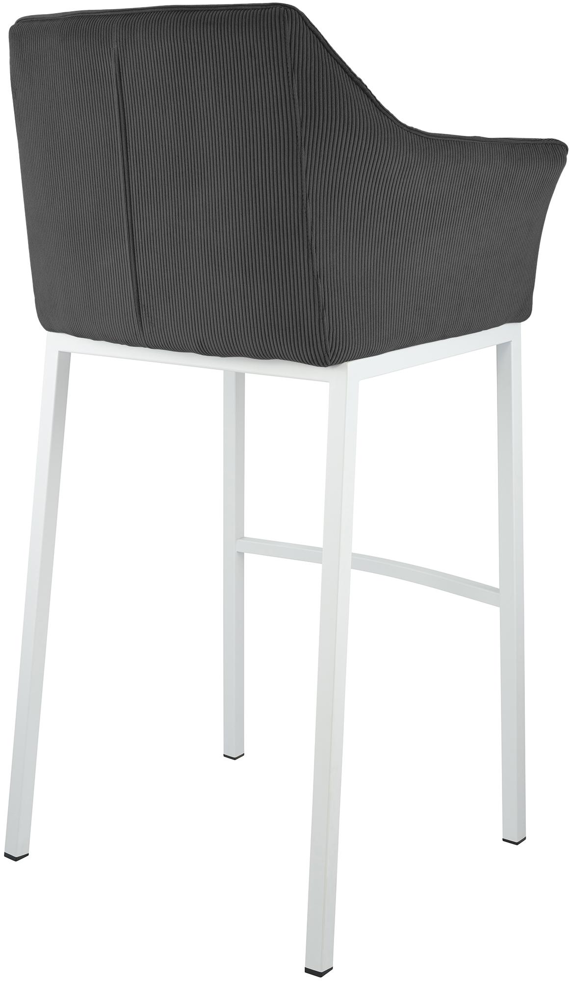 Tabouret de bar x1 assise enveloppante capitonnée en velours côtelé gris foncé avec structure à 4 pieds en métal blanc 10_0006166