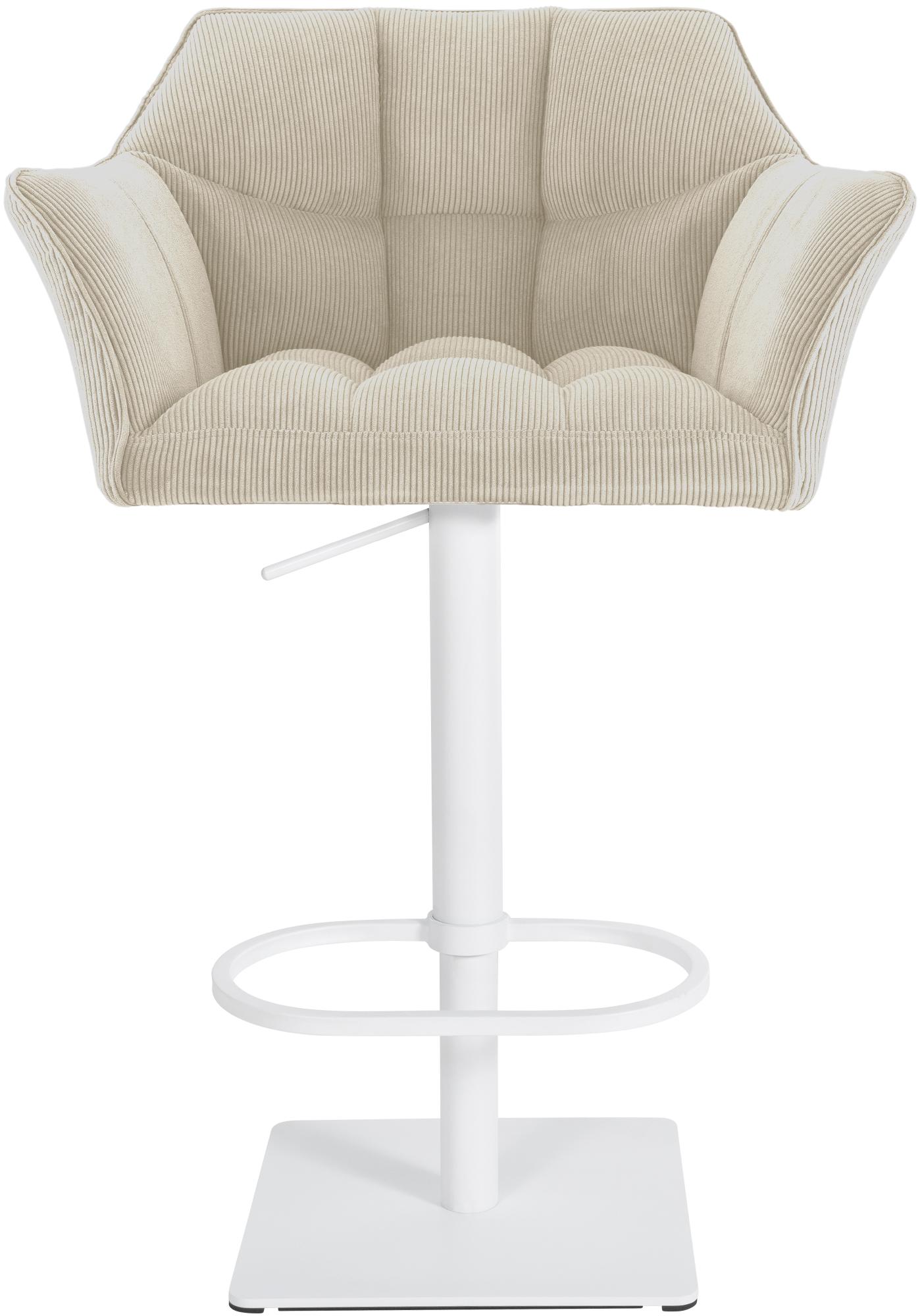 Tabouret de bar x1 réglable en velours côtelé crème assise enveloppante capitonnée avec base carrée en métal blanc 10_0006303