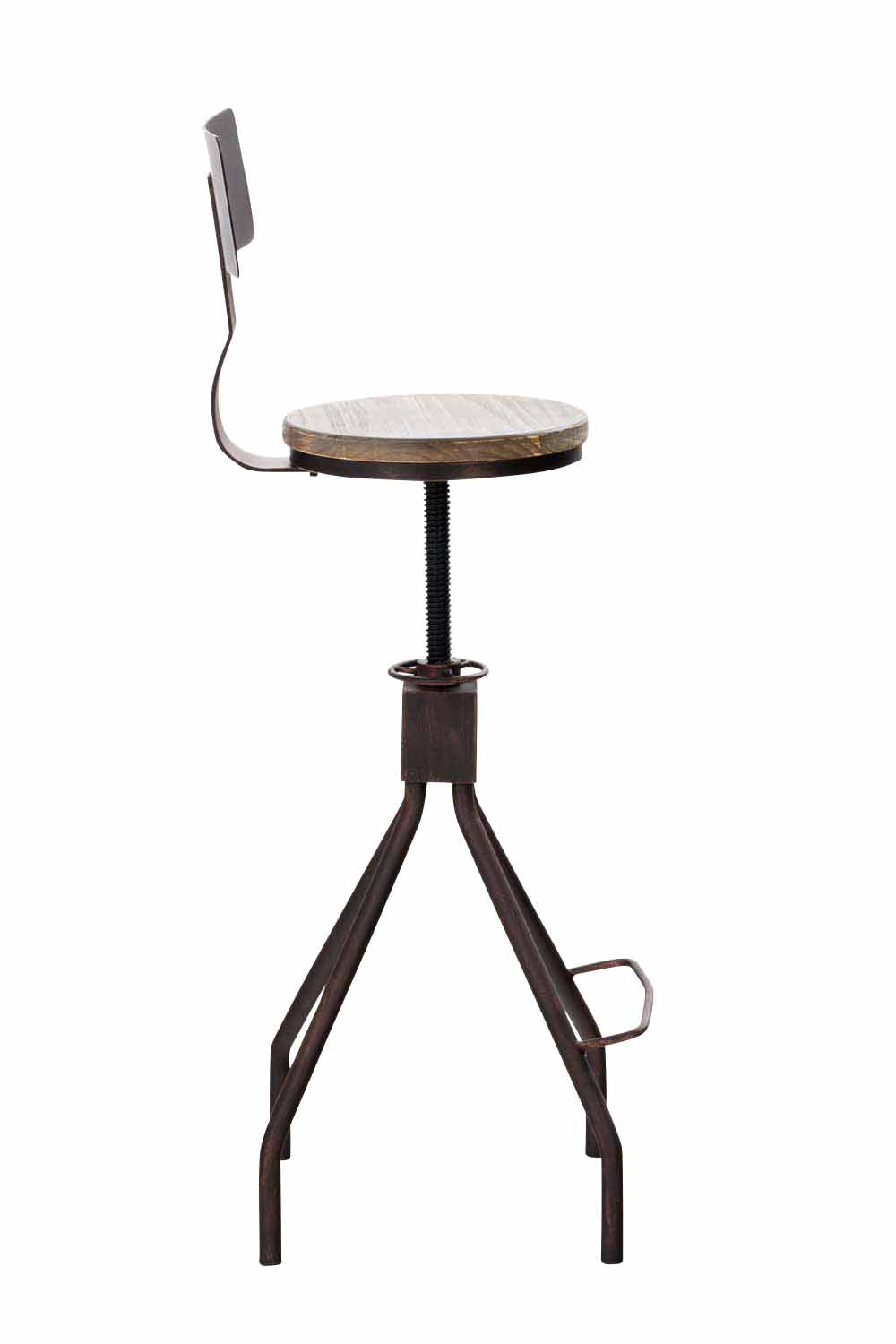 Chaise haute avec repose-pieds avec dossier style industriel – assise bois massif et structure métal bronze 10_0006099