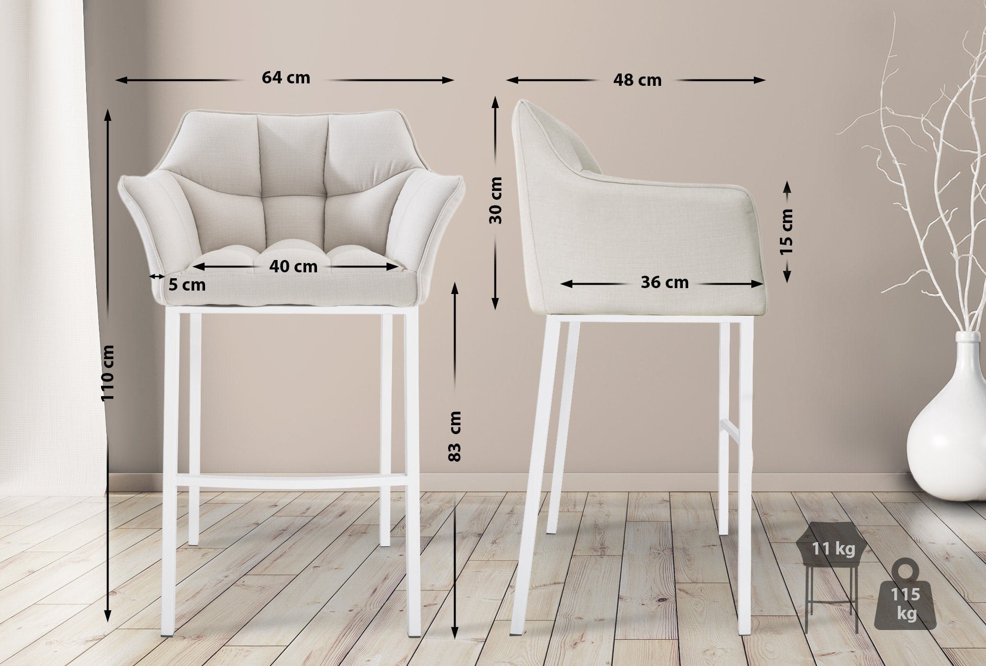 Le tabouret de bar allie élégance et confort. Son revêtement en tissu aux couleurs tendance apporte une touche intemporelle à n'importe quelle pièce, ce qui le rend idéal pour la cuisine, le salon, la salle à manger et le bar.