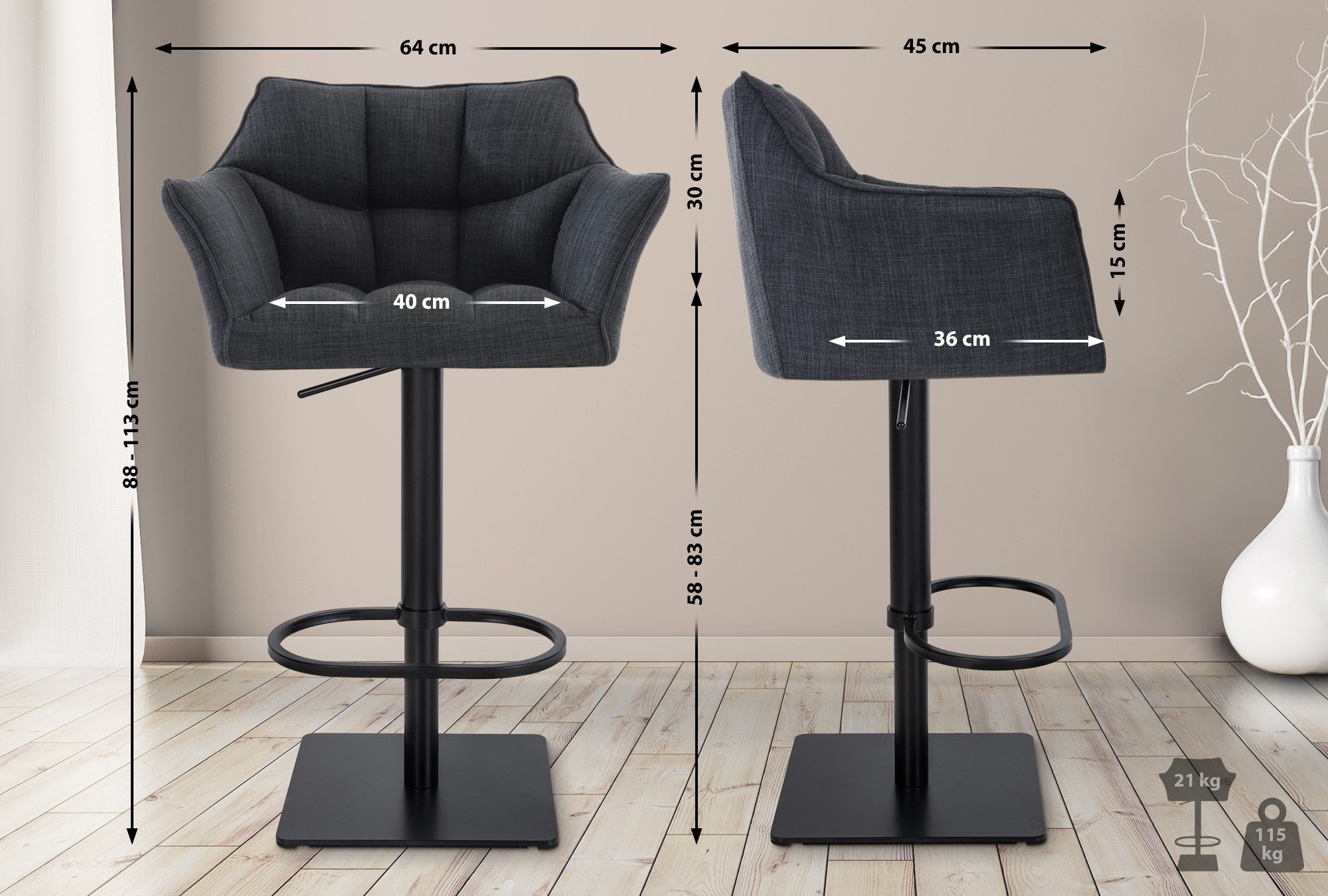 Tabouret de bar x1 réglable en tissu gris foncé assise enveloppante capitonnée et avec base carrée en métal noir 10_0005617
