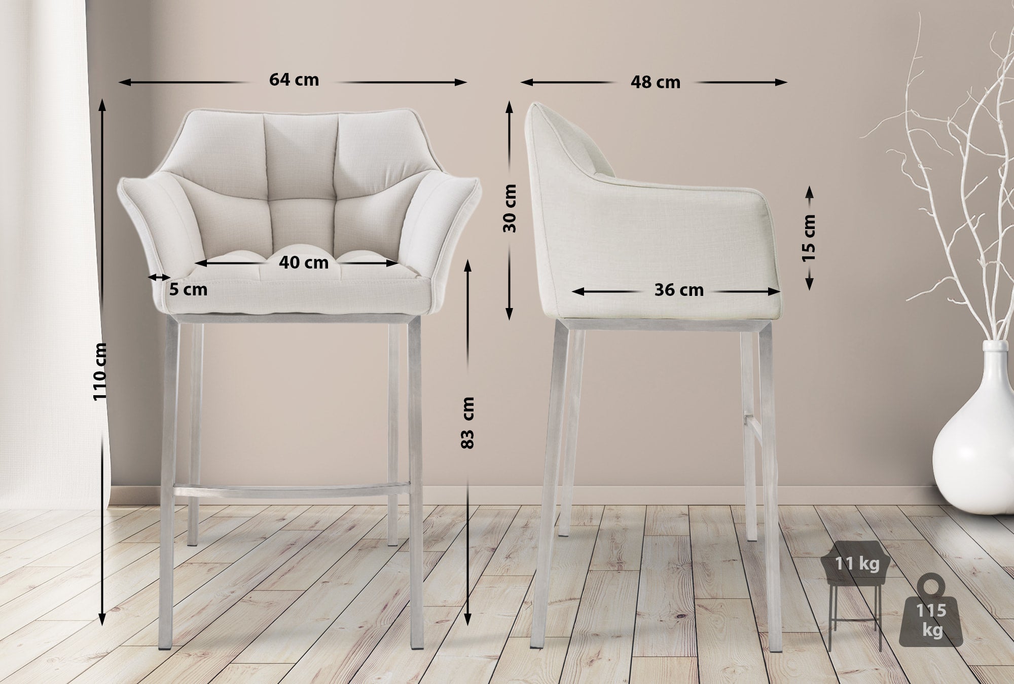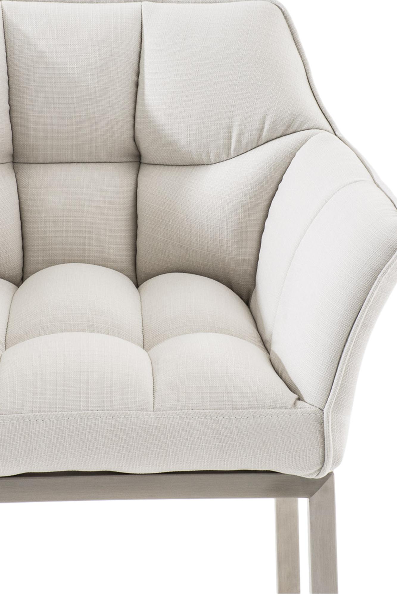 Tabouret de bar x1 assise enveloppante capitonnée en tissu blanc avec structure à 4 pieds en acier inoxydable 10_0006607