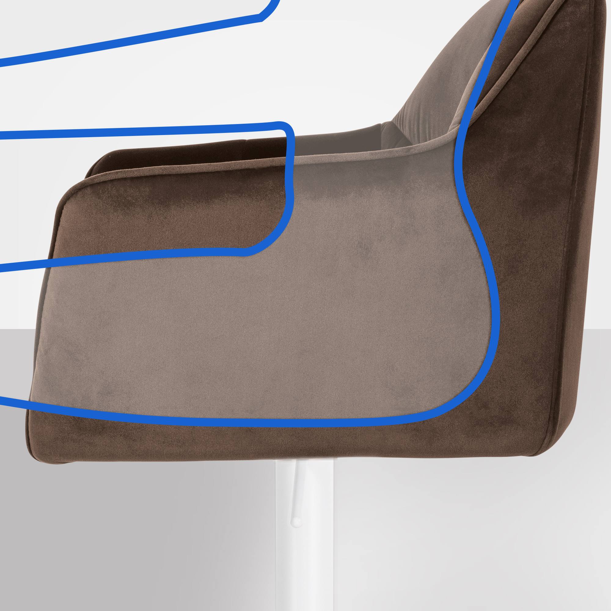 Tabouret de bar x1 réglable en velours marron assise enveloppante capitonnée avec base carrée en métal blanc 10_0006461