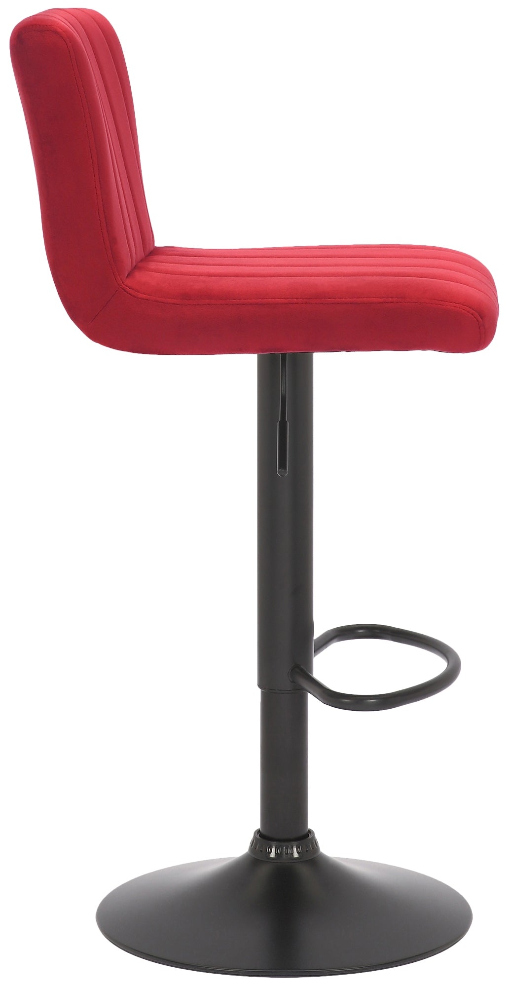 Tabouret de bar x1 pivotant hauteur réglable assise surpiqué en velours rouge et métal noir 10_0006046