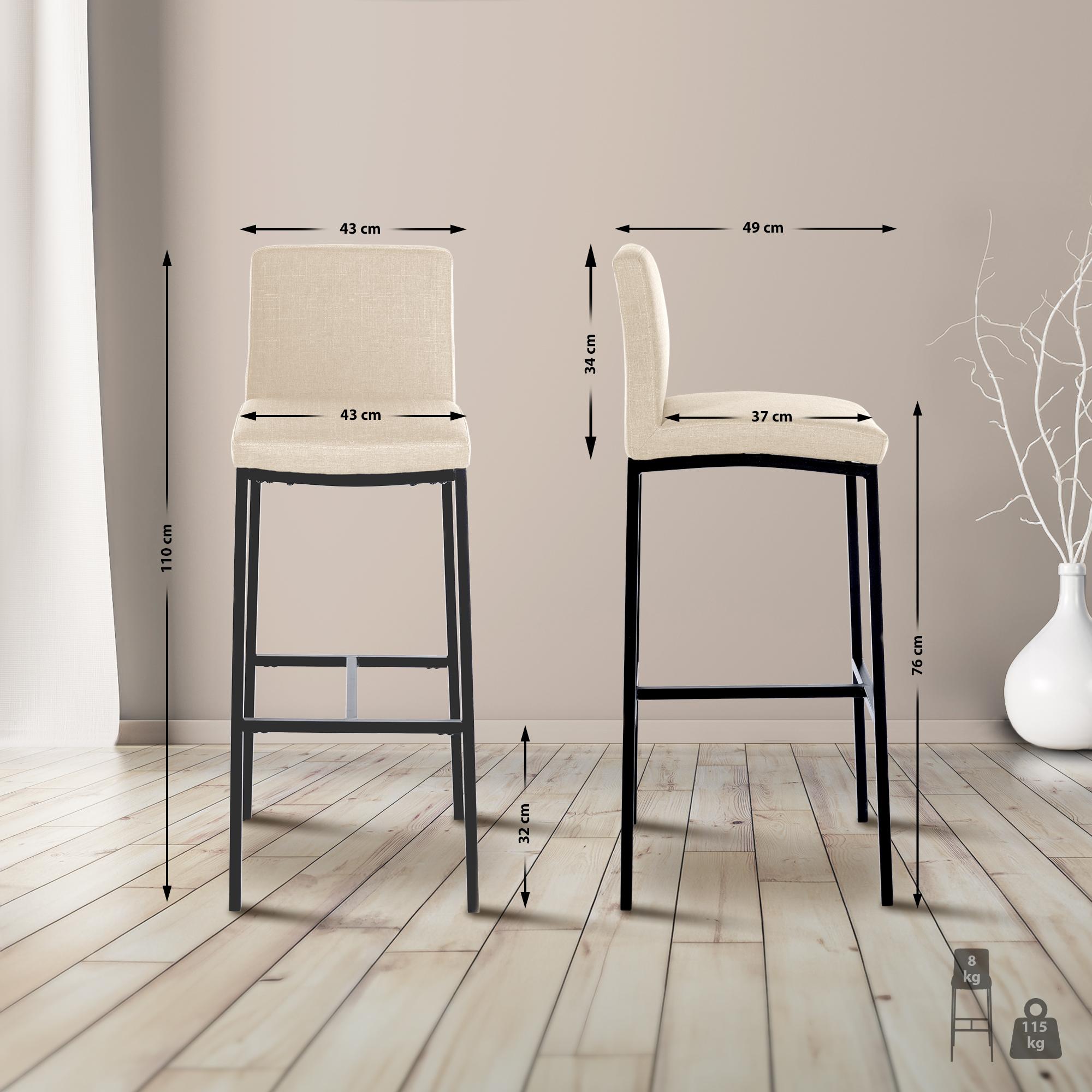Tabouret de bar x1 design épuré et contemporain en tissu crème cadre à quatre pieds en métal noir 10_0006111