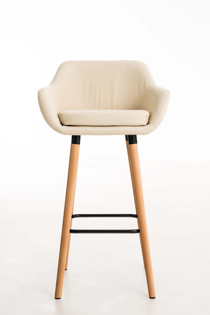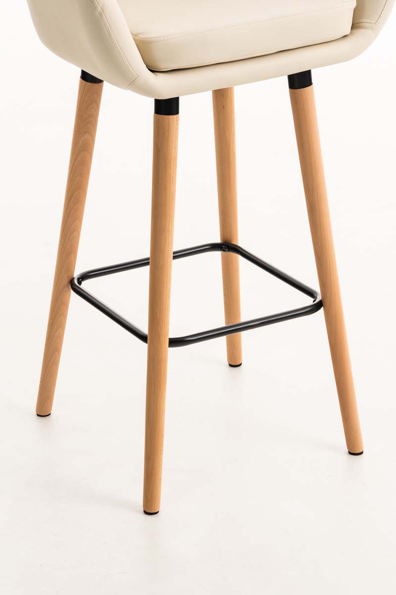 Tabouret de bar x1 design scandinave en PVC crème cadre en bois repose-pieds en métal 10_0006151