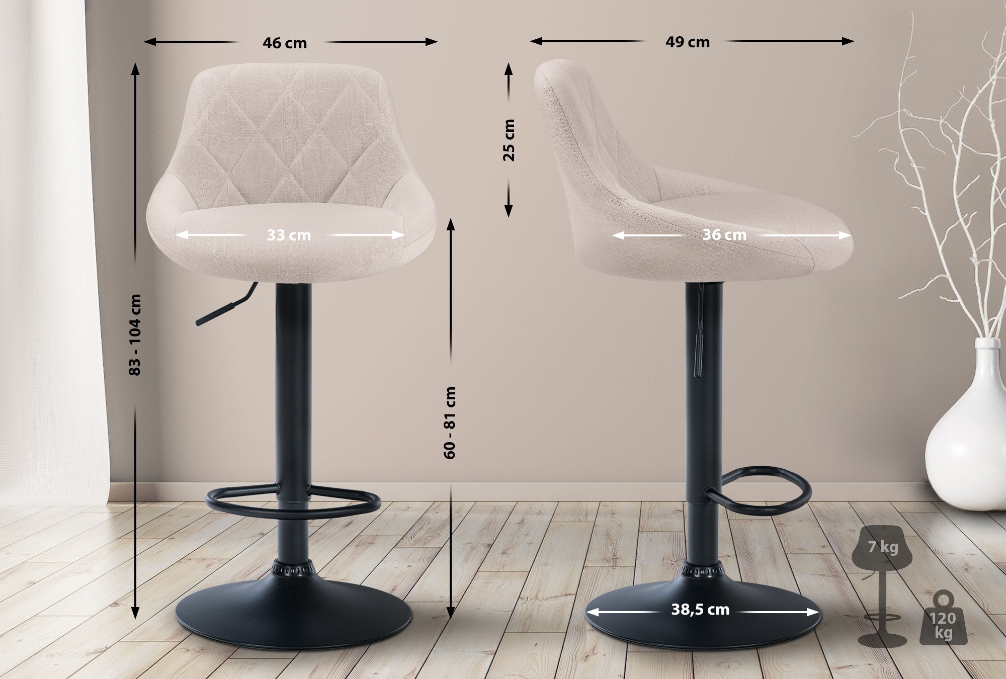 Tabouret de bar chaise haute x 1 avec coutures décoratives assise en tissu crème pieds métal noir 10_0005088