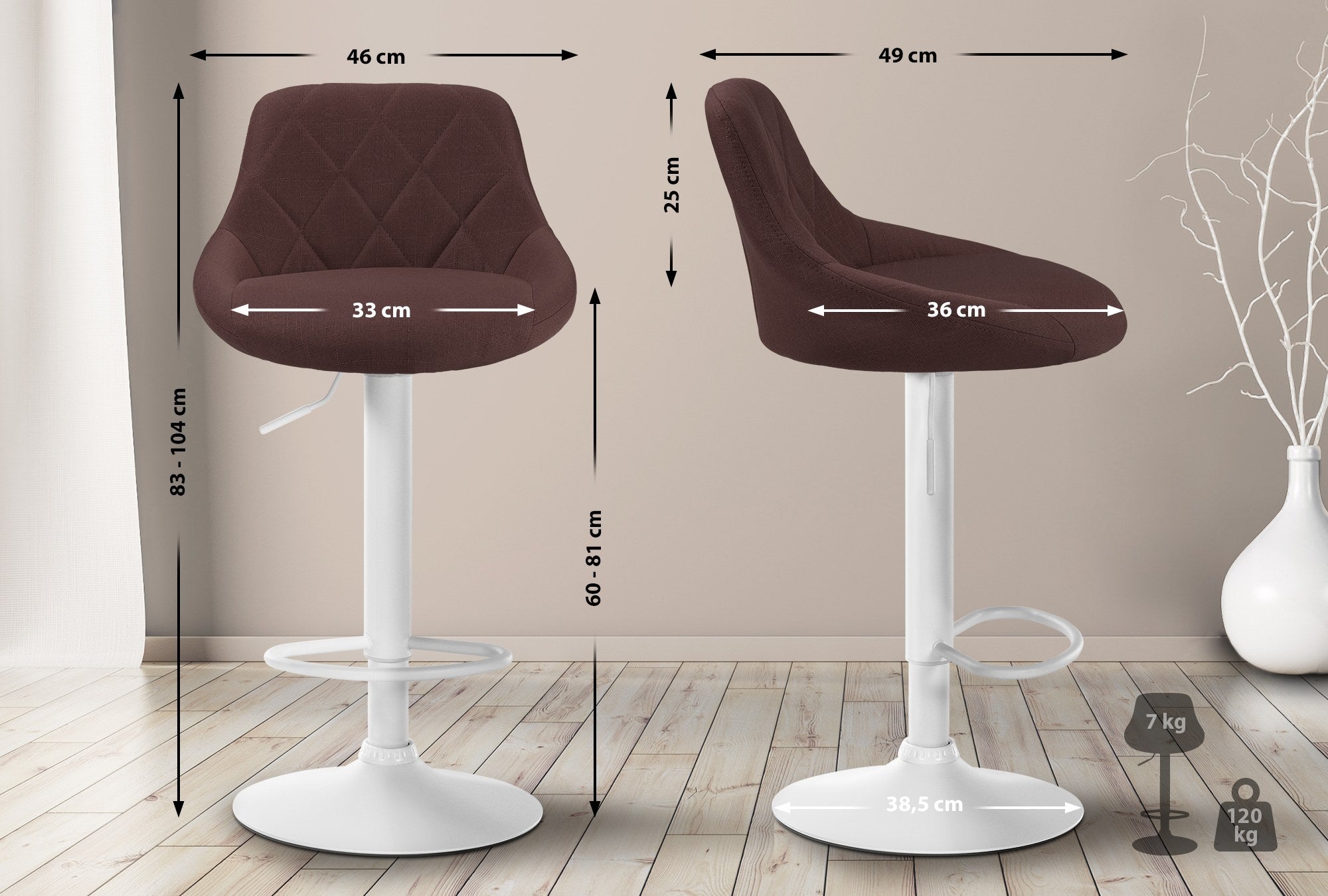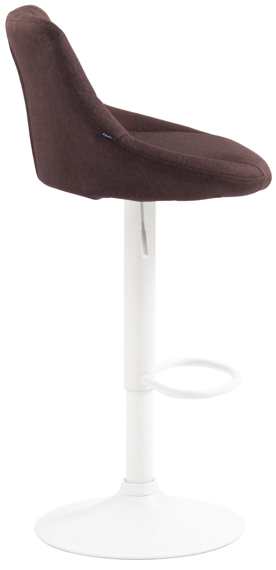 Tabouret de bar chaise haute x 1 avec coutures décoratives assise en tissu marron pieds métal blanc 10_0005090