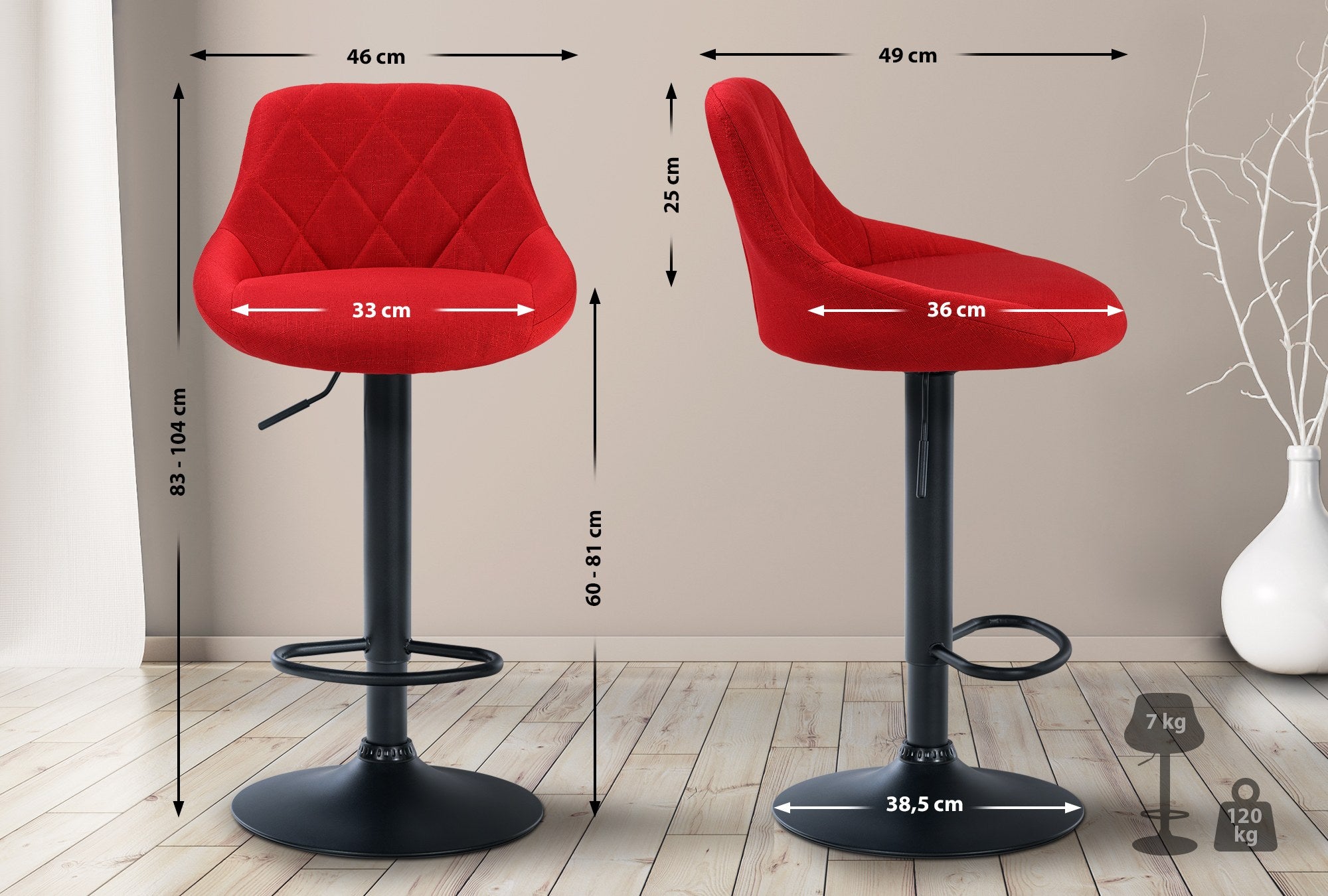 Tabouret de bar x1 pivotant hauteur réglable en tissu rouge surpiqûres décoratives cadre en métal noir 10_0005930