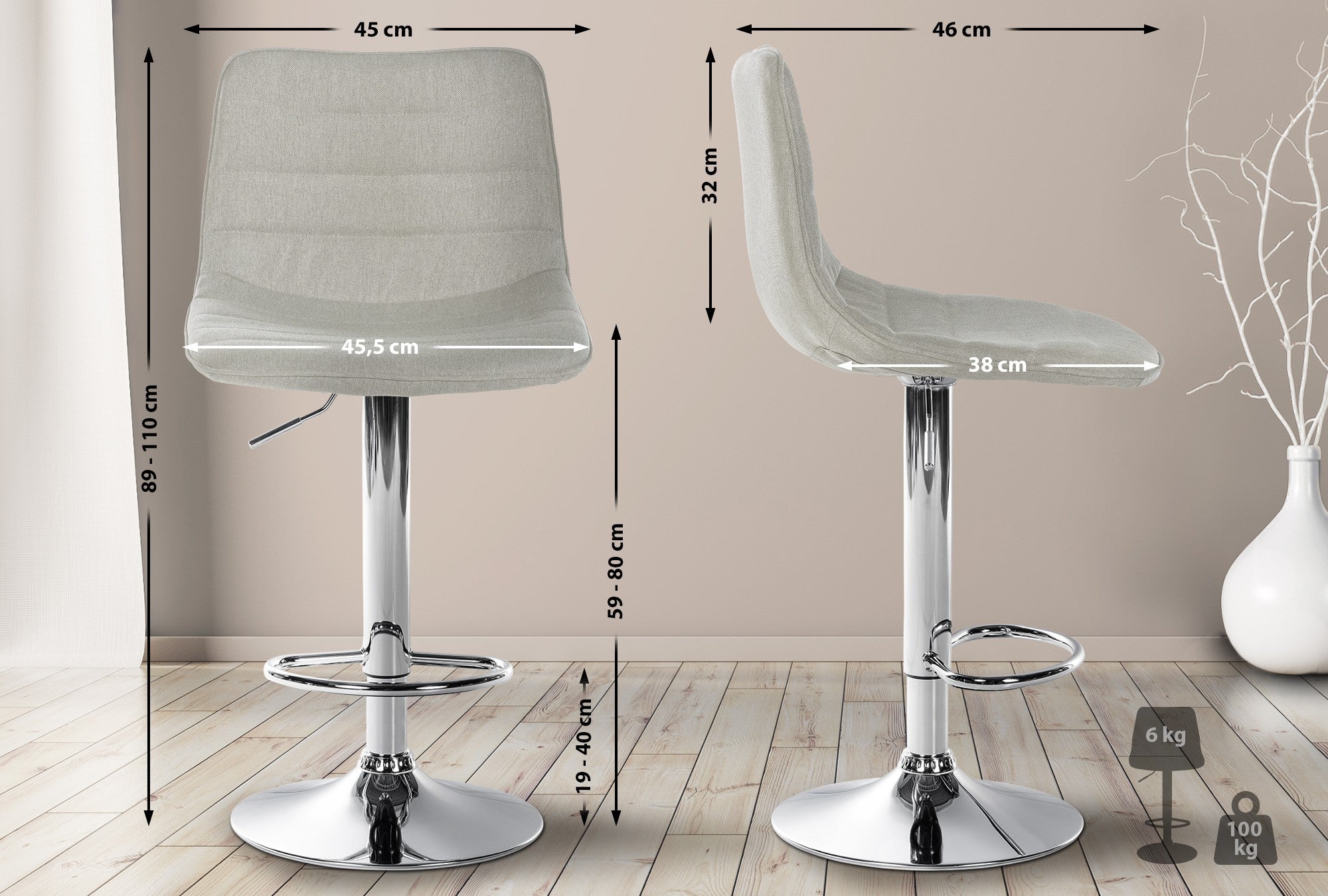 Tabouret de bar chaise haute x1 avec repose-pieds incurvé en tissu crème structure métallique chromé 10_0005145