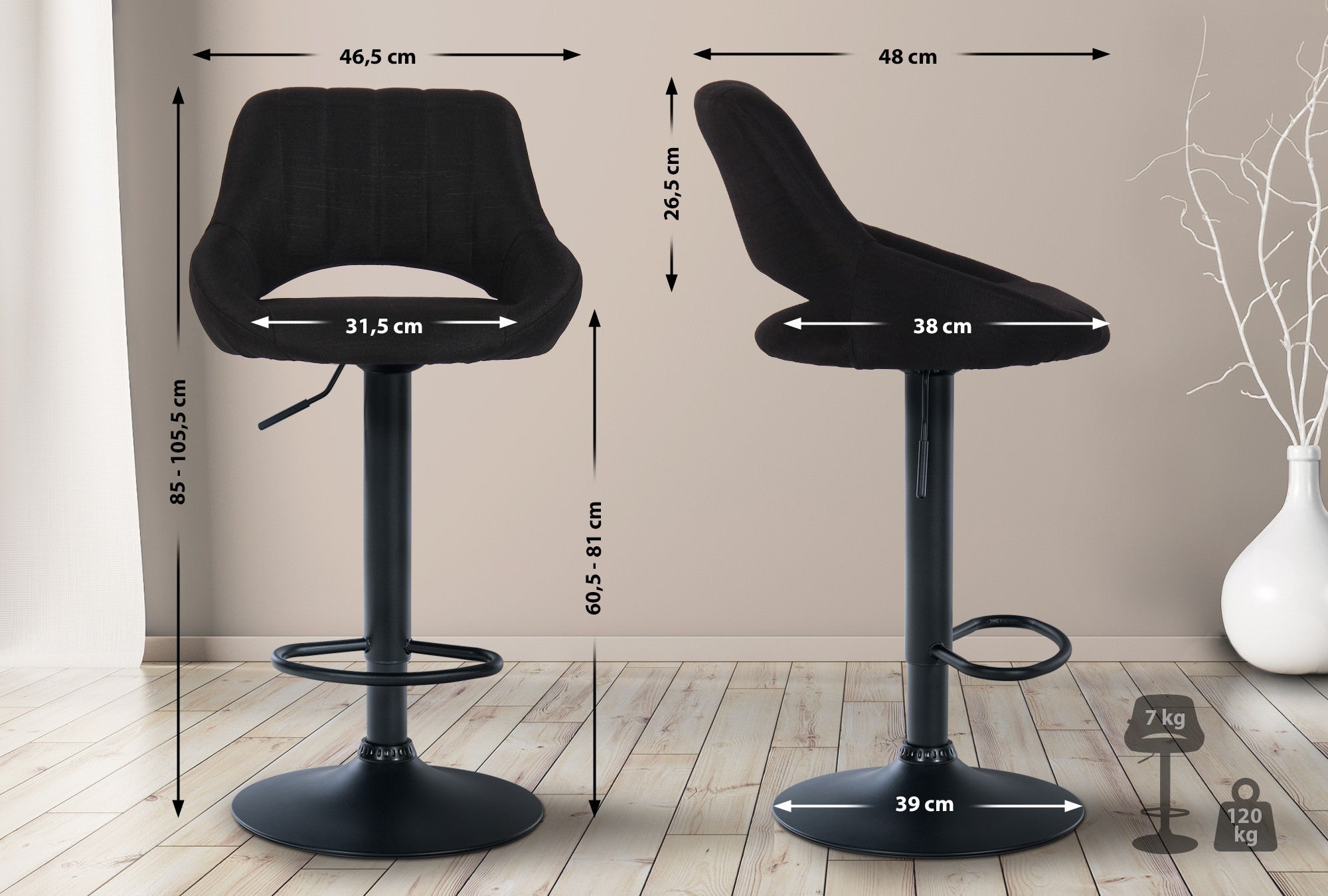 Hauteur totale: 85 - 105,5 cm