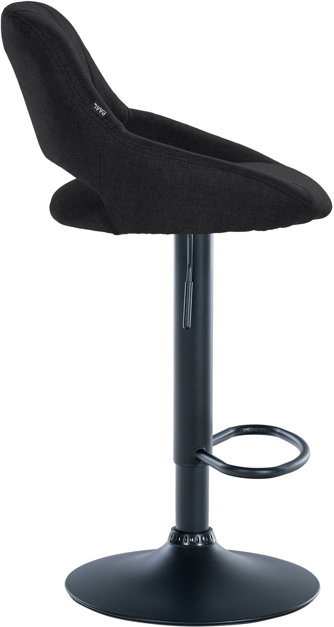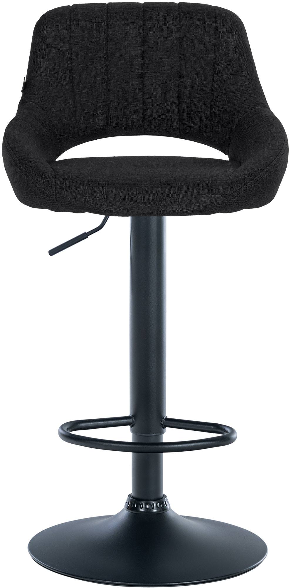 Tabouret de bar x1 réglable en hauteur en tissu noir dossier ajouré et pied métal noir 10_0005901
