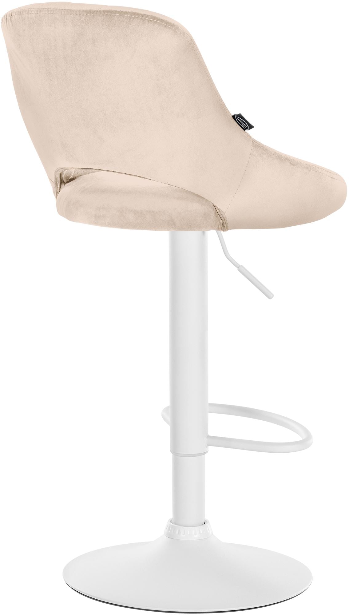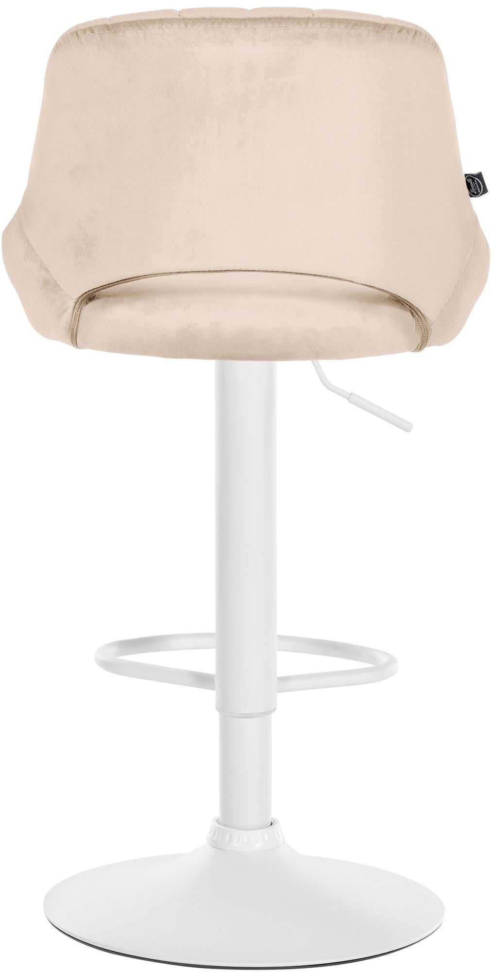 Tabouret de bar x1 réglable en hauteur en velours crème dossier ajouré et pied métal blanc 10_0005731