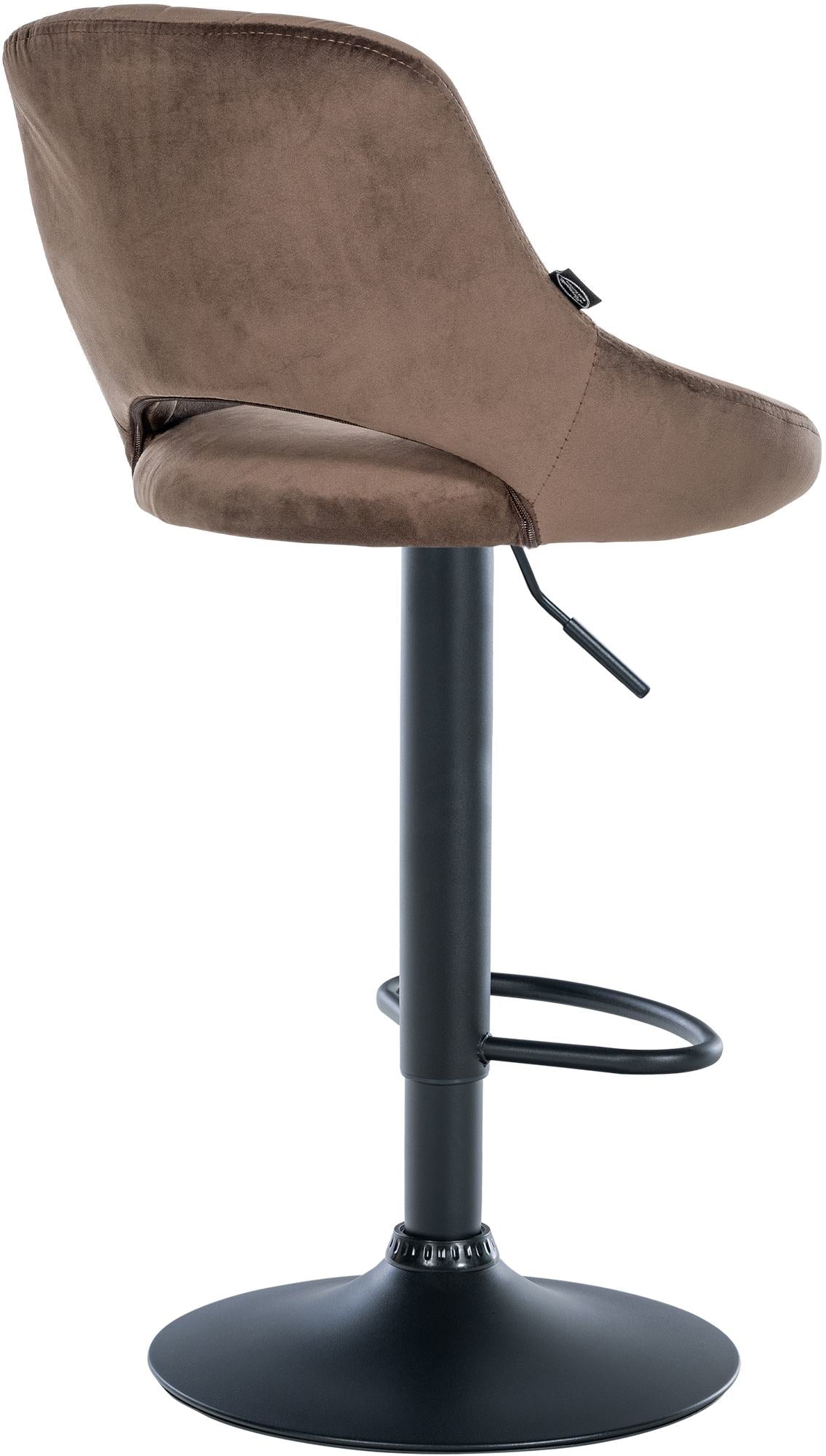 Tabouret de bar x1 réglable en hauteur en velours marron dossier ajouré et pied métal noir 10_0005735