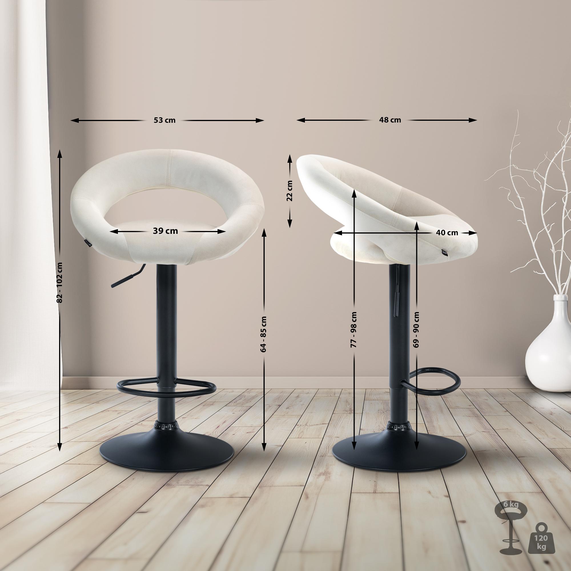 Tabouret de bar x1 assise ronde et style contemporain en velours crème et métal noir 10_0005740