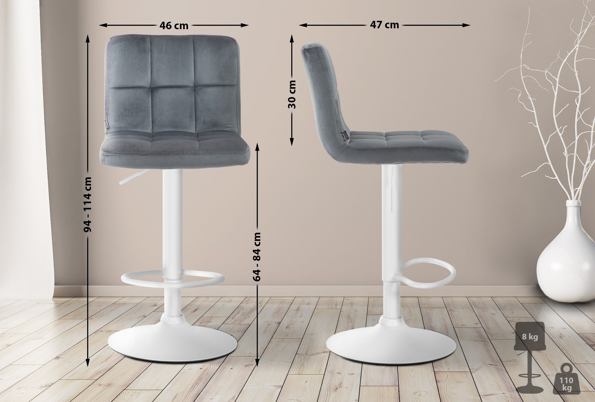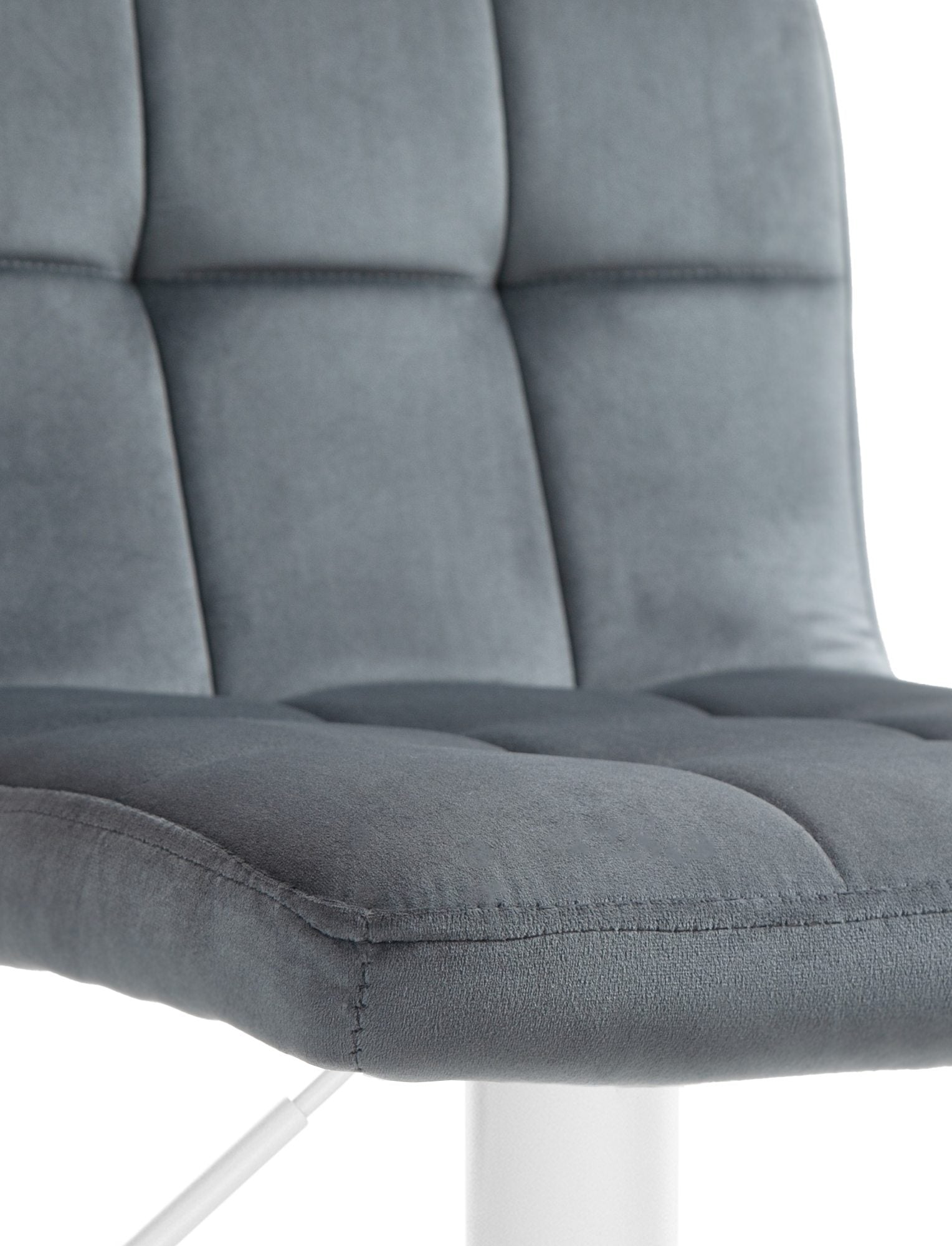 Tabouret de bar chaise haute x 1 avec coutures décoratives carrées assise en velours gris foncé pieds en métal blanc 10_0005337