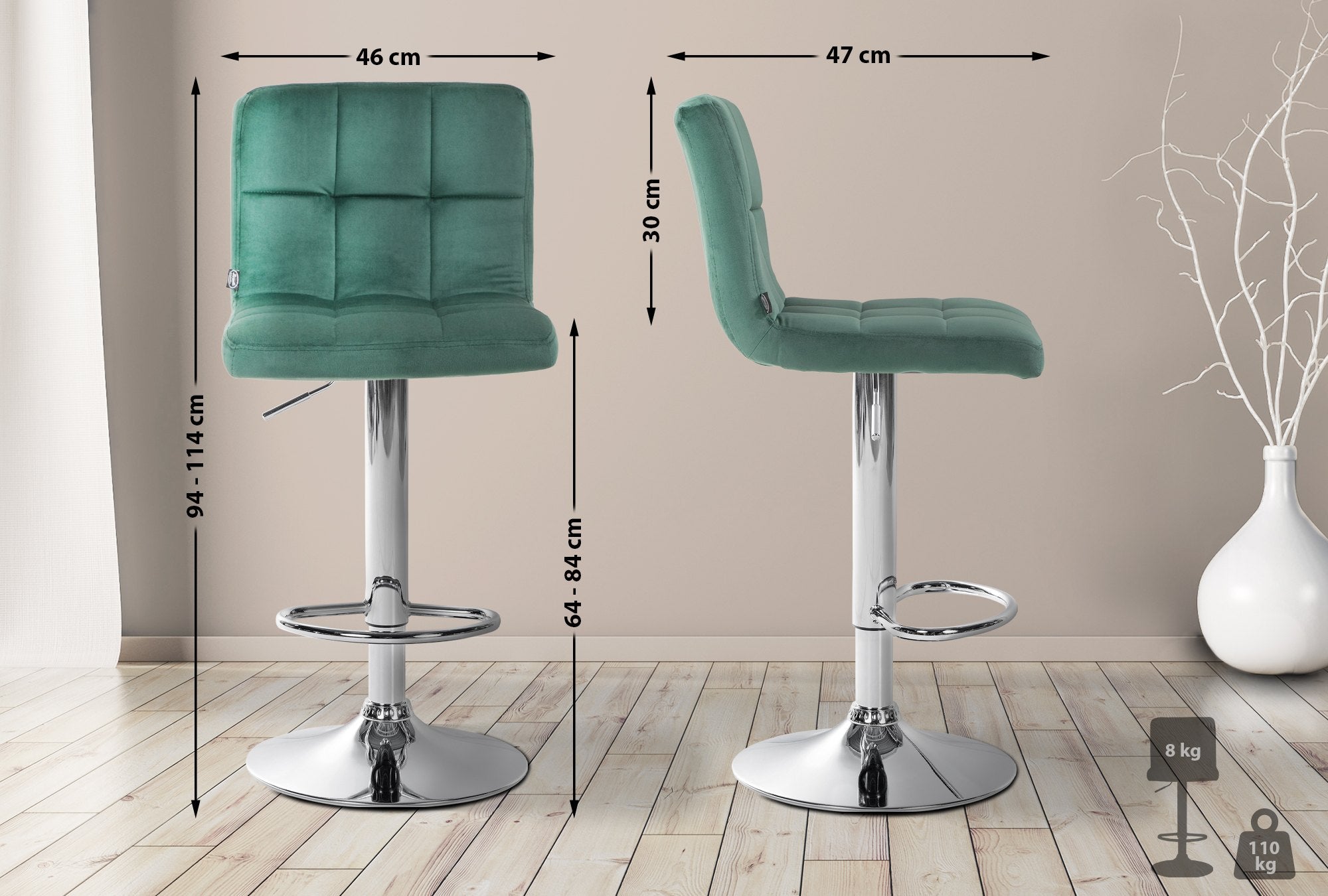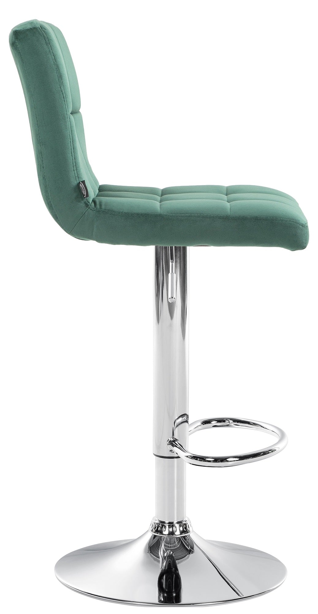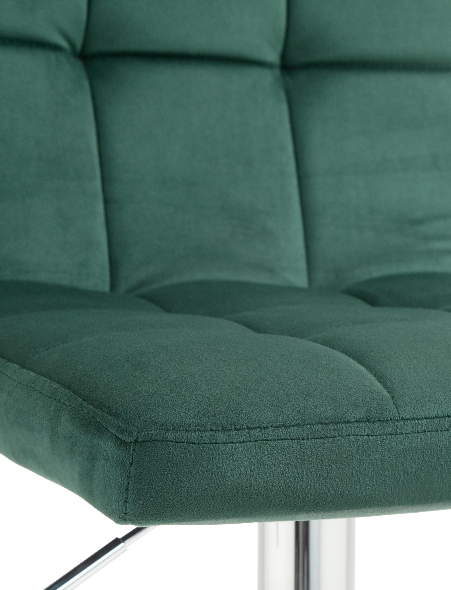 Tabouret de bar chaise haute x 1 avec coutures décoratives carrées assise en velours vert pieds en métal chromé 10_0005327