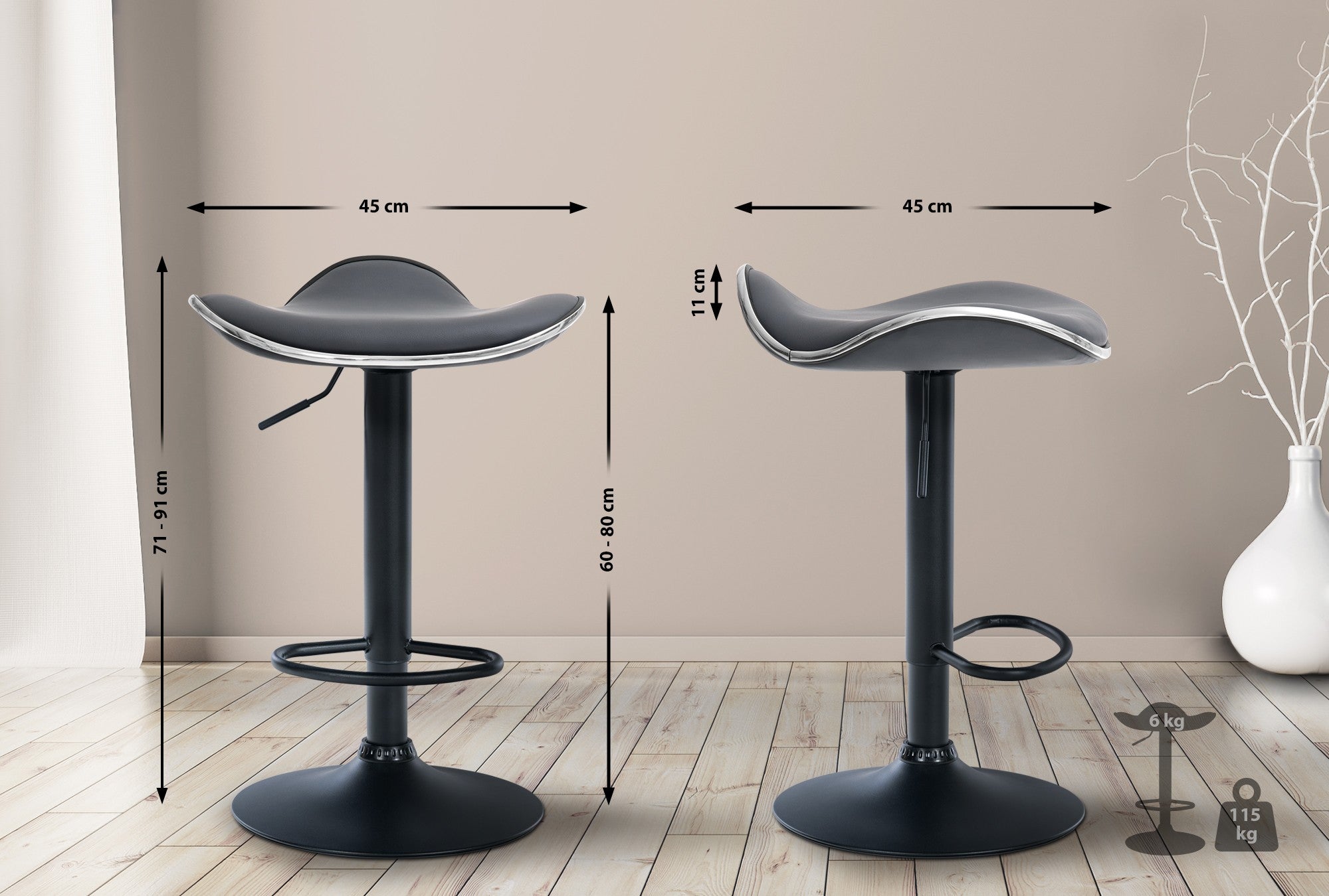 Hauteur d’assise : 60 - 80 cm