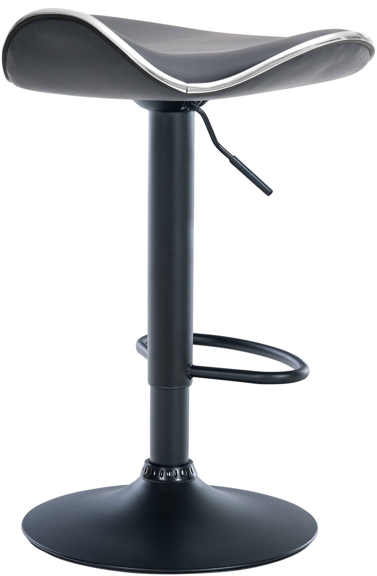 L'assise du tabouret est recouverte de similicuir de haute qualité et offre un rembourrage confortable. La coque incurvée soutient la zone du coccyx. Le cadre métallique robuste est stable et robuste, et grâce à sa rotation à 360 degrés, il est extrêmement flexible. La hauteur réglable en continu permet des ajustements individuels, tandis que le repose-pieds intégré offre un confort supplémentaire.
