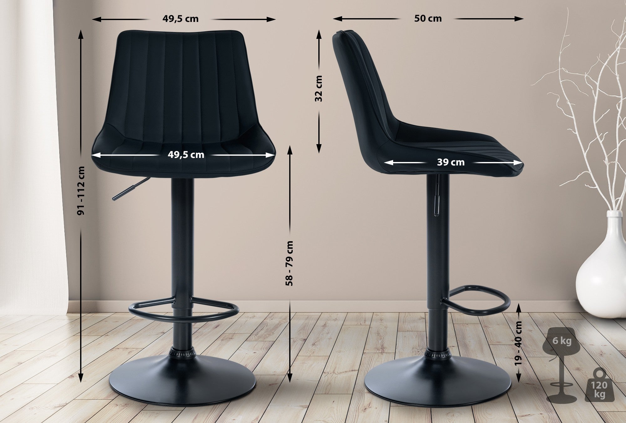 Hauteur totale: 91 - 112 cm