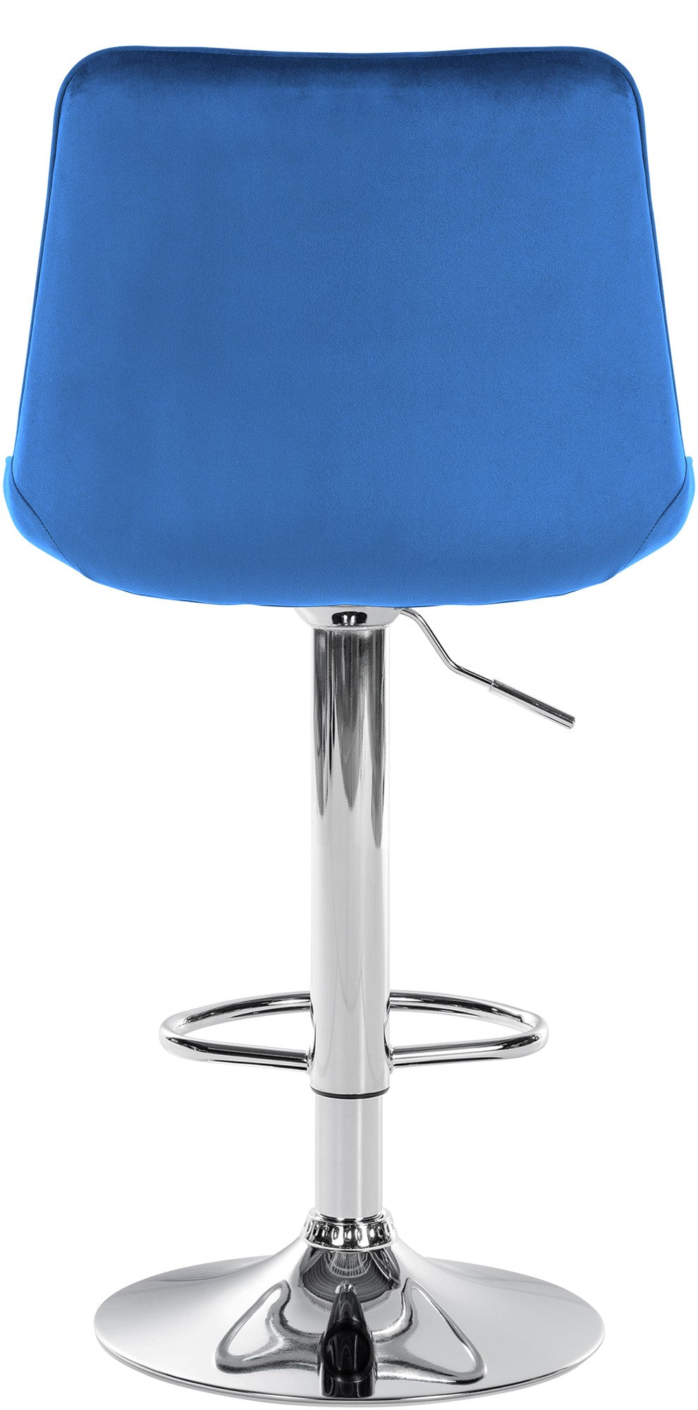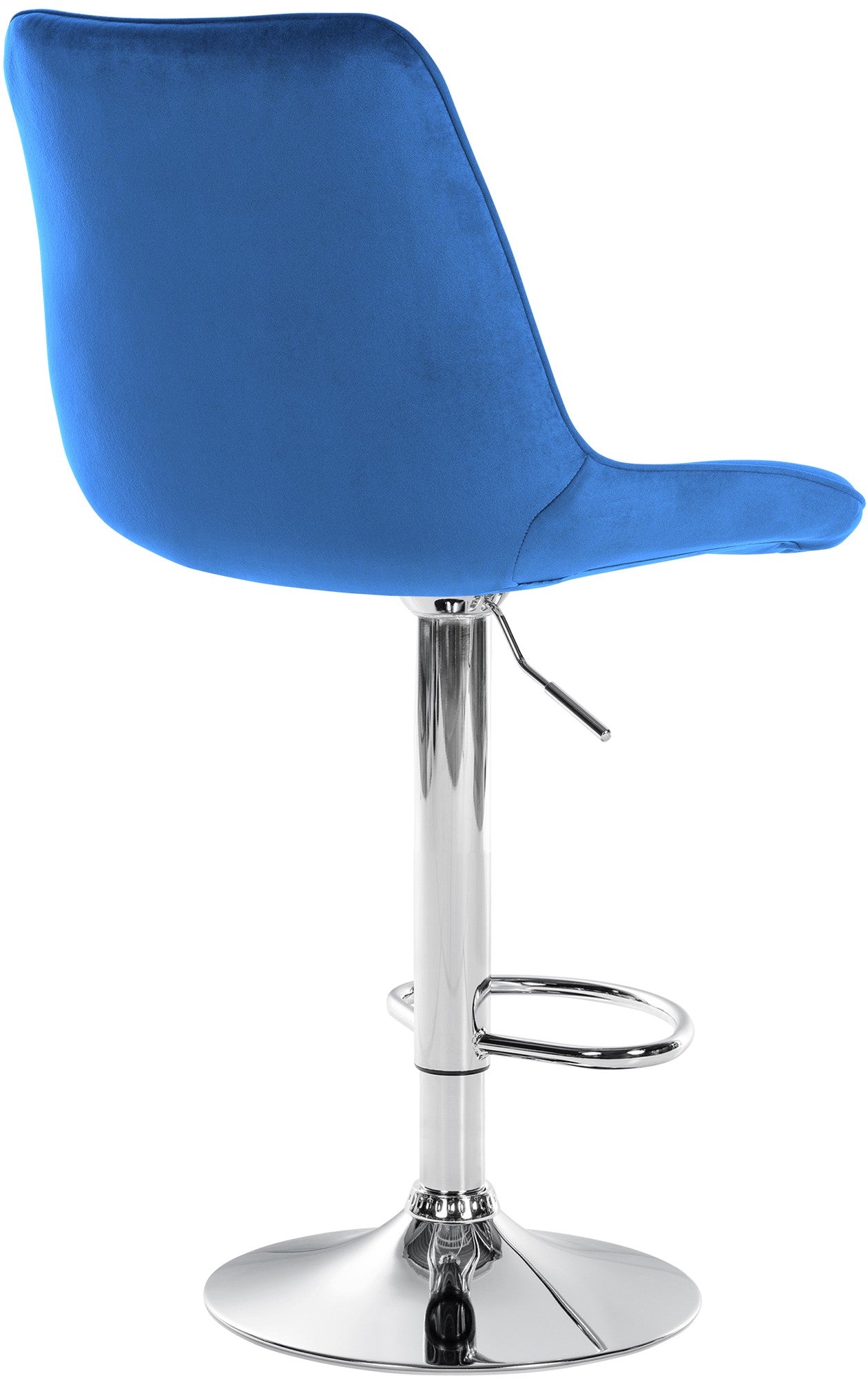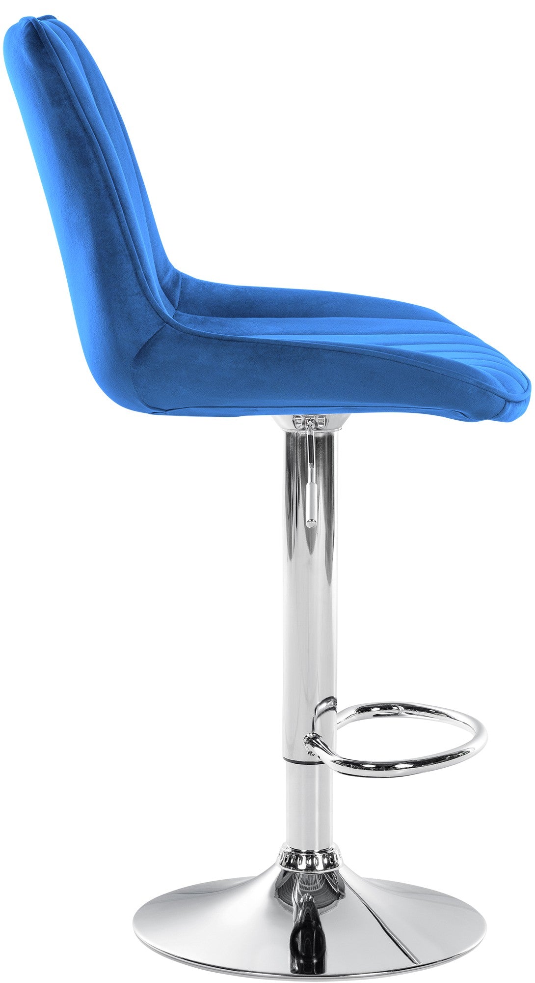 Tabouret de bar x1 réglable en hauteur pivotant à 360° assise en velours bleu couture verticale pied métal aspect chromé 10_0005428