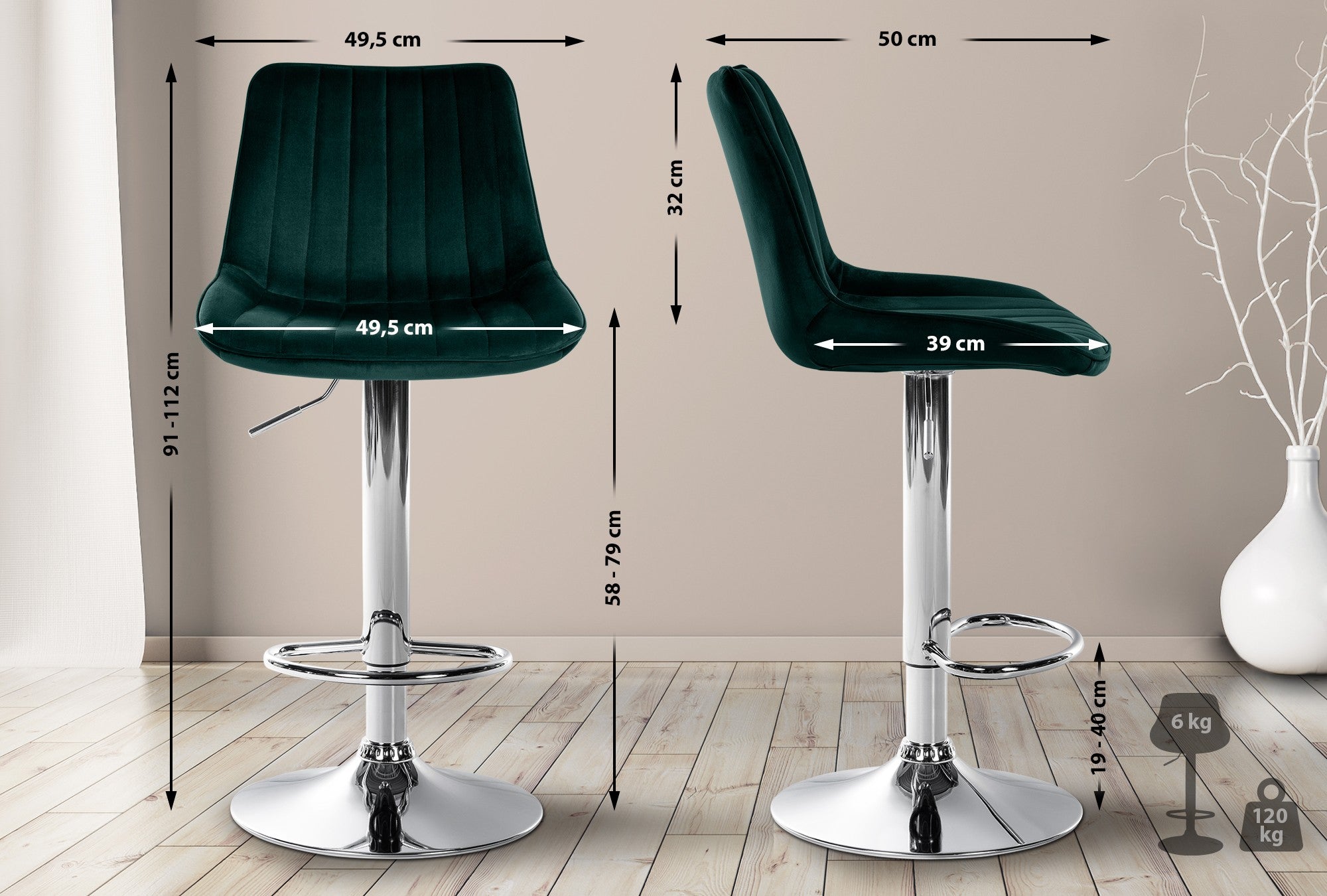 Tabouret de bar x1 réglable en hauteur pivotant à 360° assise en velours vert couture verticale pied métal chromé 10_0006442