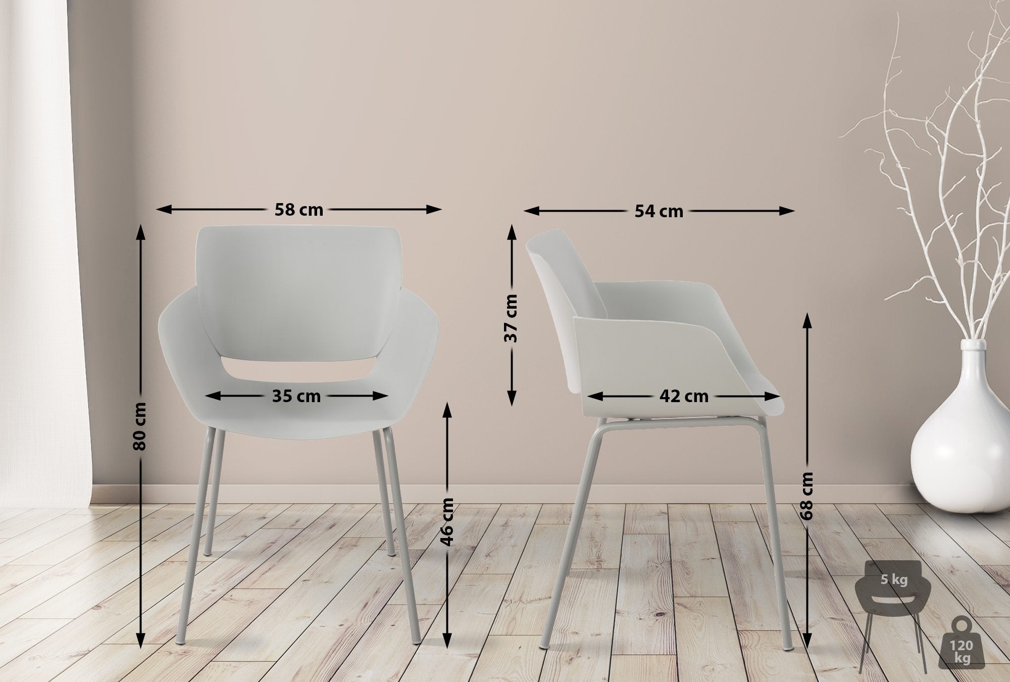 Fabriquée à partir de matériaux résistants aux intempéries, la chaise peut être utilisée aussi bien à l'intérieur qu'à l'extérieur. Elle est donc idéale comme chaise de jardin, pour la terrasse et le balcon, mais aussi comme chaise de cuisine, de salle à manger, de bistrot et pour les conférences.