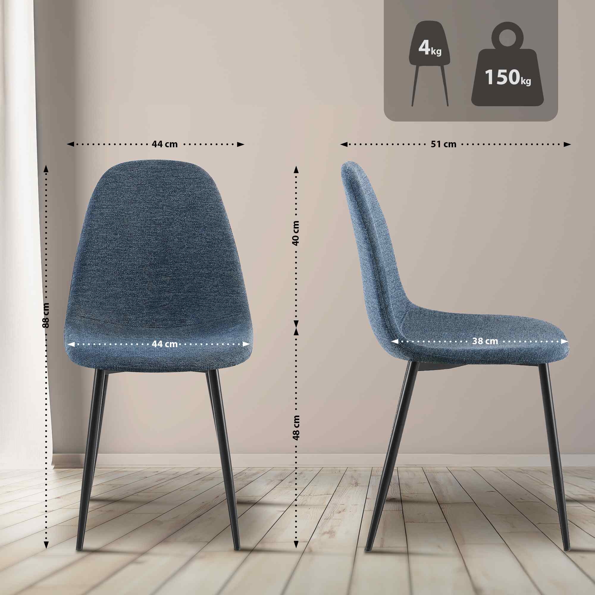 Chaise de salle à manger x1 confort rembourré & design moderne en tissu bleu foncé cadre en métal noir 10_0007169