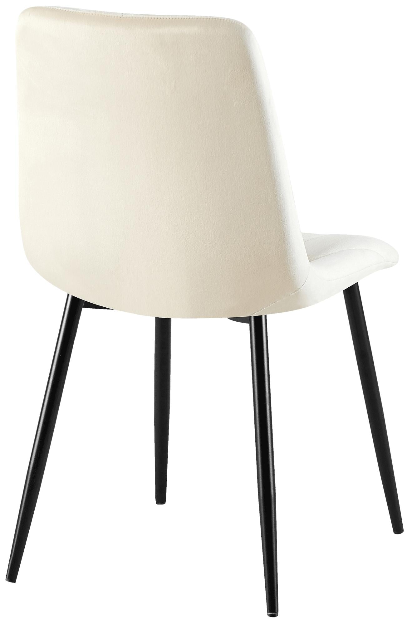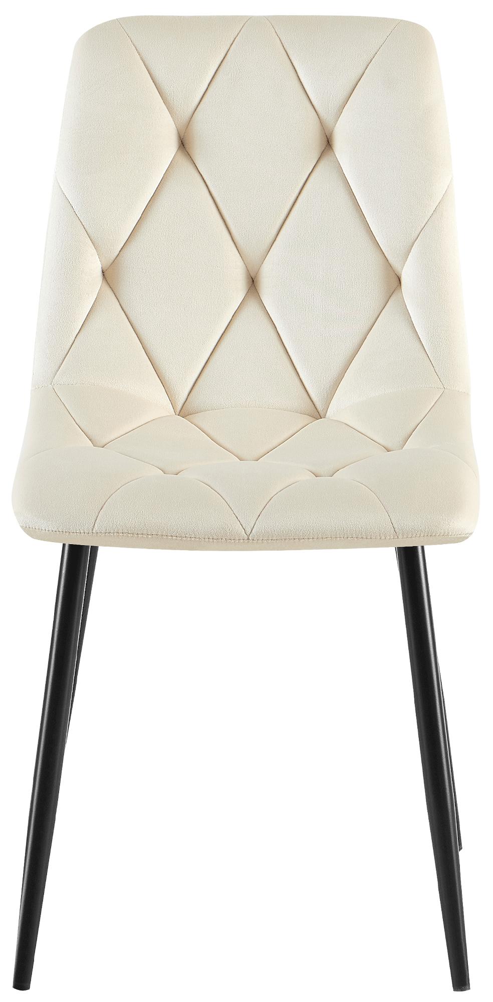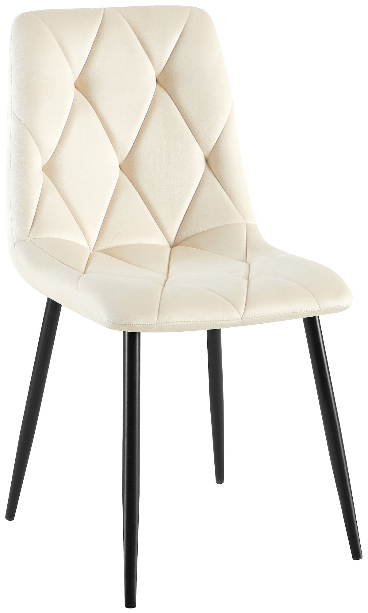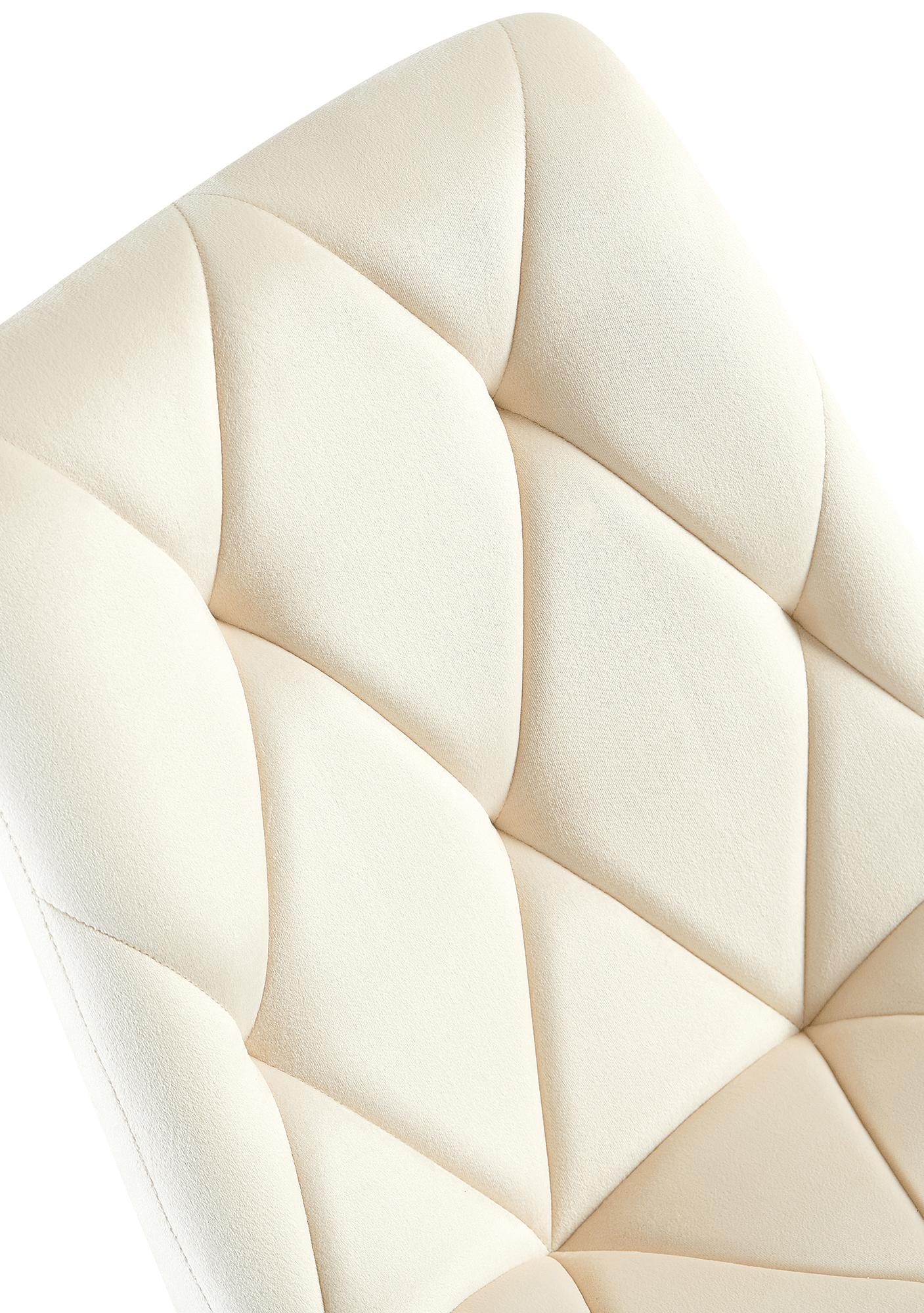 Chaise de salle à manger x1 en velours crème coutures décoratives losange cadre métal 10_0007185