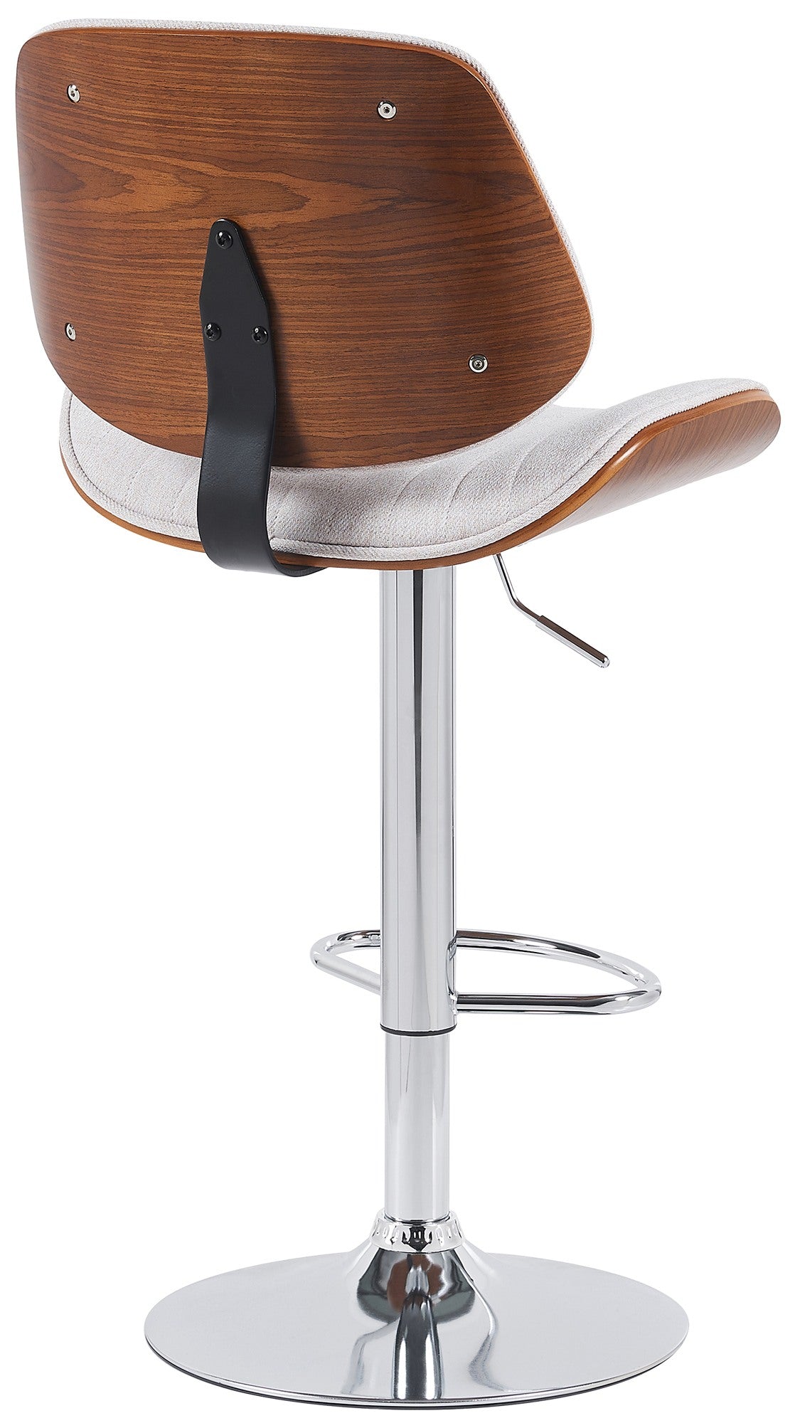 Lot de 2 tabourets de bar style rétro moderne assise en tissu crème bois noyer et cadre métal chromé 10_0006661