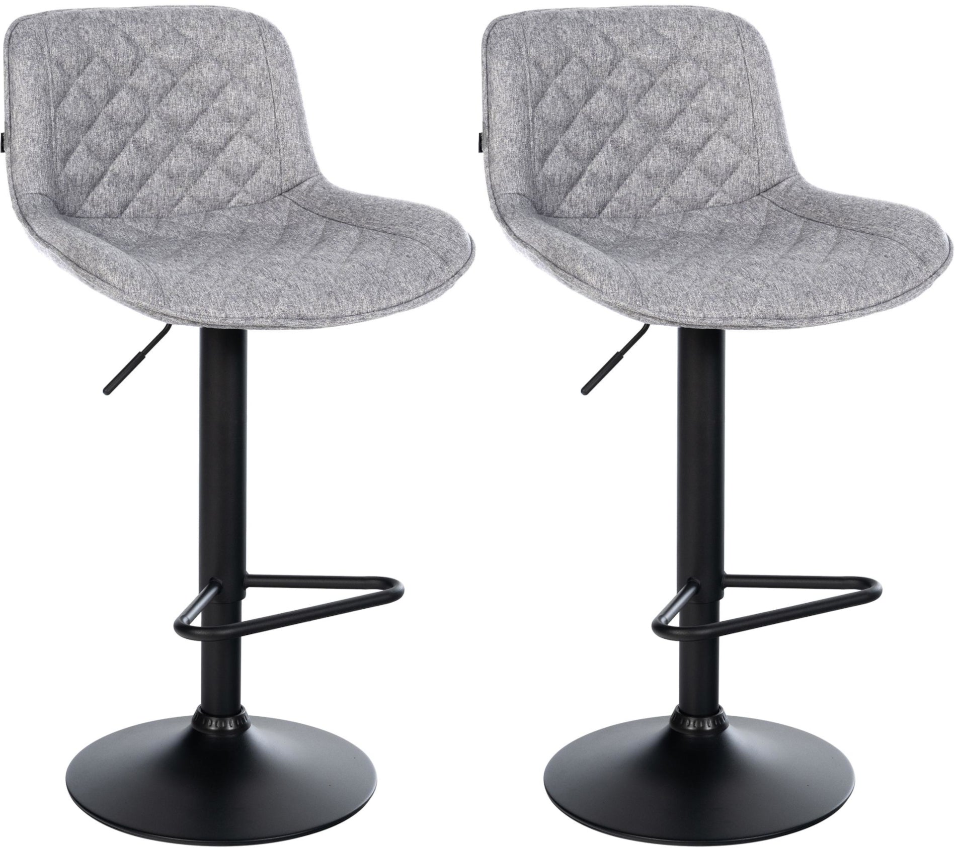 Lot de 2 tabourets de bar repose-pieds hauteur réglable en tissu gris clair coutures losange cadre métal noir 10_0006232