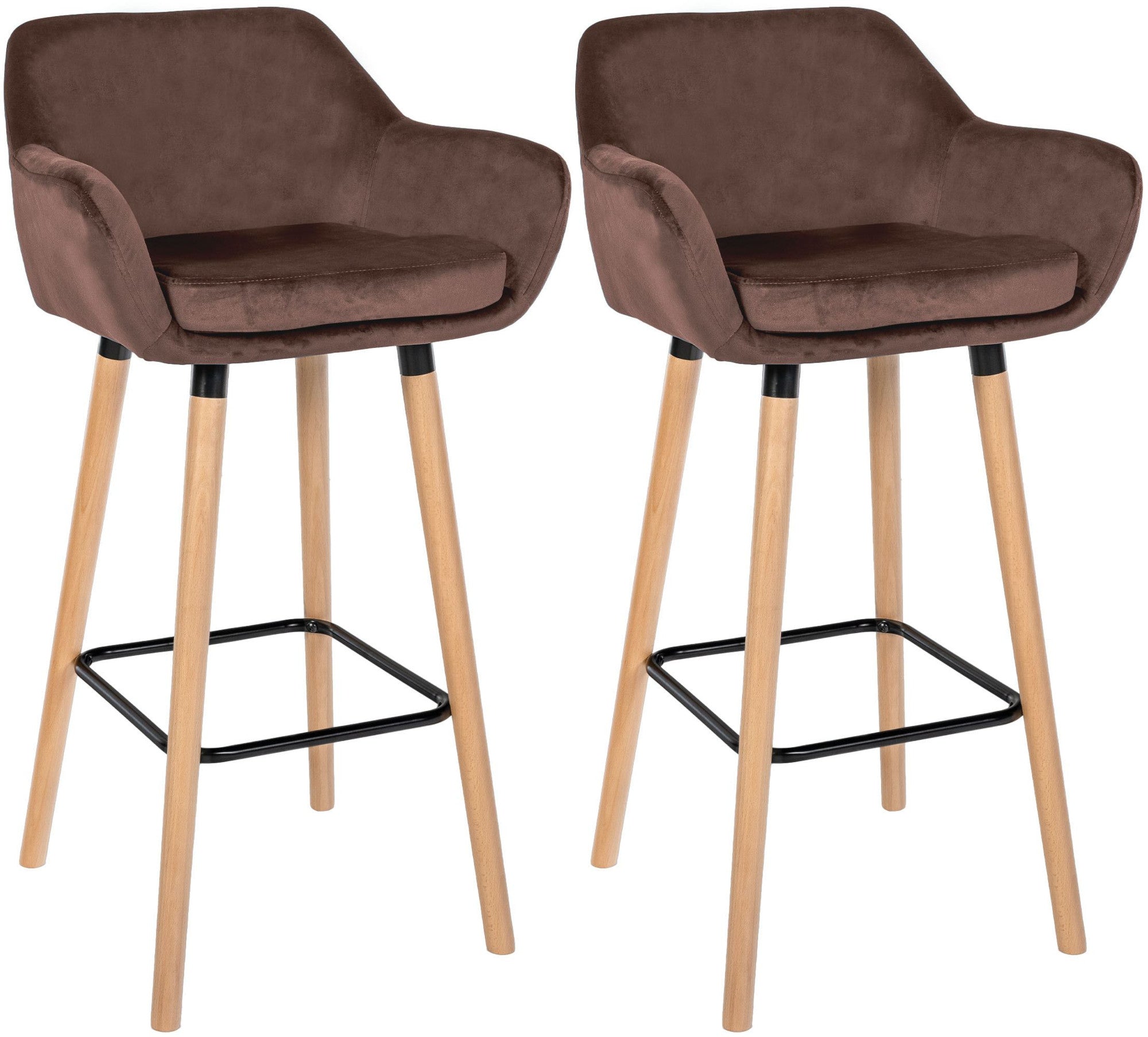 Lot de 2 tabourets de bar design scandinave en velours marron cadre en bois repose-pieds en métal 10_0006589