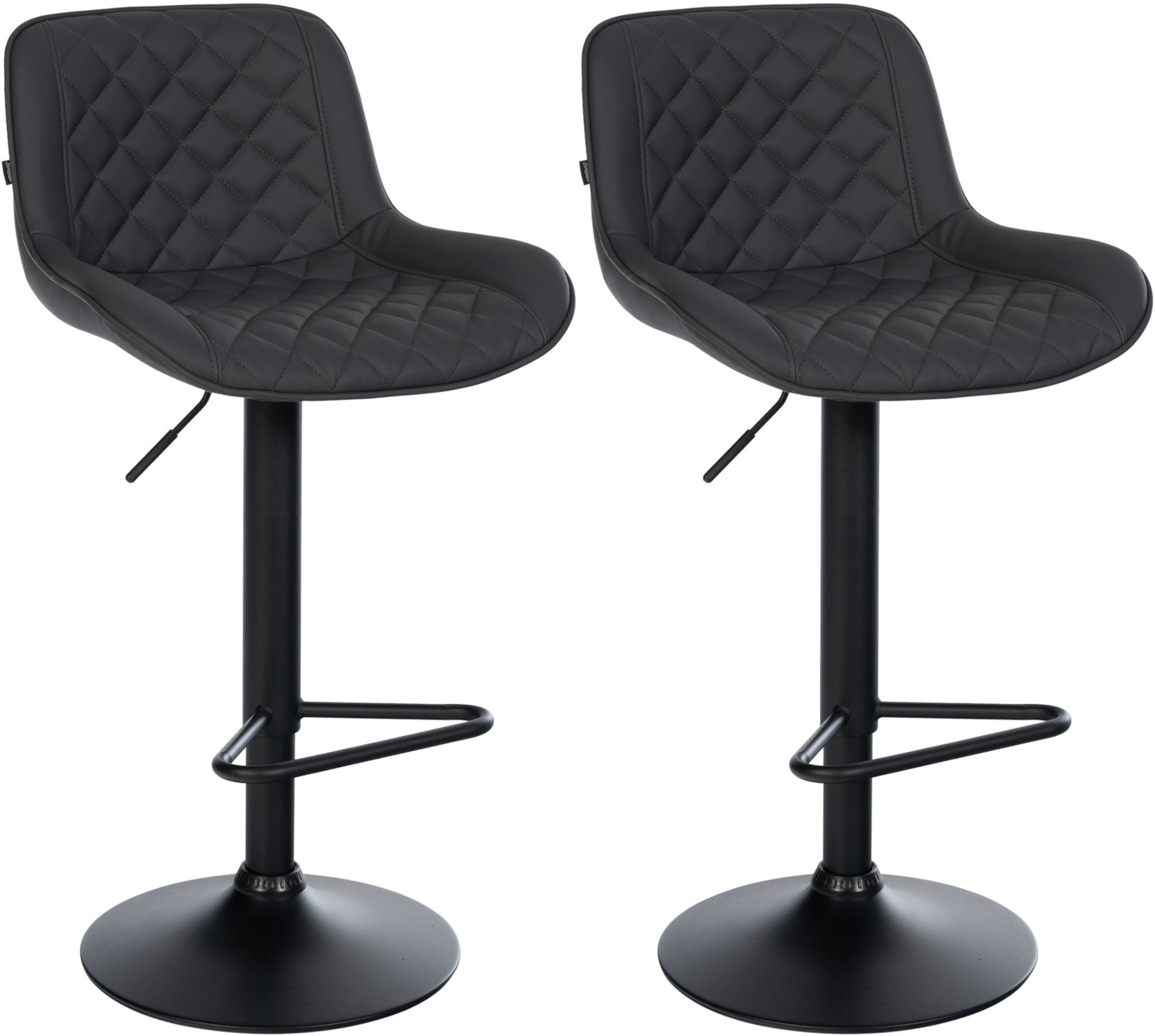 Lot de 2 tabourets de bar repose-pieds hauteur réglable en PVC noir coutures losange cadre métal noir 10_0006708