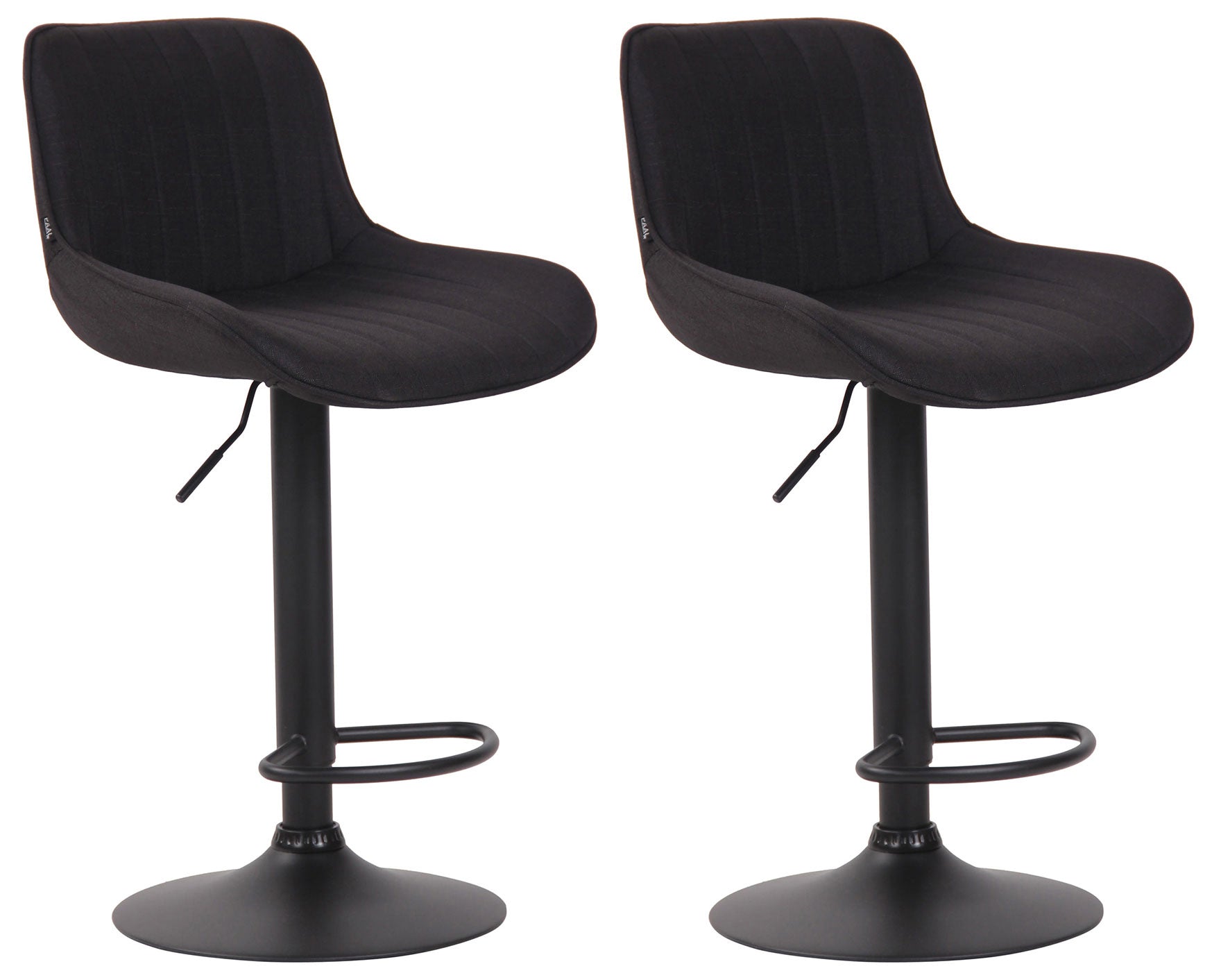 Lot de 2 tabourets de bar chaises haute en tissu noir coutures verticales support en métal noir 10_0006244