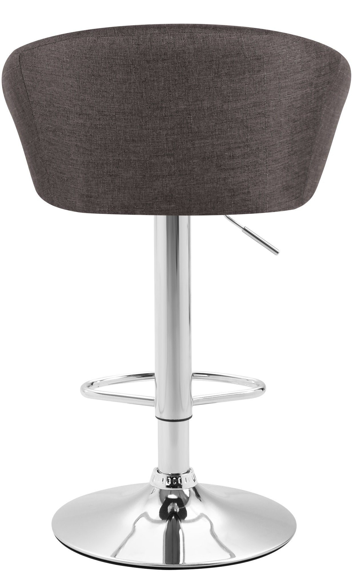 Le tabouret de bar est doté d'une assise en tissu. Les sièges, semblables à des fauteuils, sont dotés d'un rembourrage confortable en mousse froide indéformable et recouverts de tissu facile d'entretien (100 % polyester). Les cadres métalliques robustes, aspect chromé, sont équipés d'un repose-pieds. Les tabourets de bar sont réglables en hauteur grâce à un vérin à gaz et l'assise est pivotante à 360°. Un patin de protection sous la plaque de base protège votre sol des rayures disgracieuses.