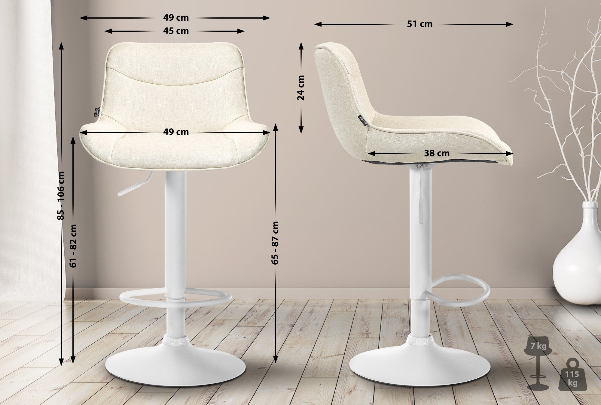 Lot de 2 tabourets de bar pivotant forme ergonomique surpiqûres décoratives en tissu crème cadre en métal blanc 10_0006004