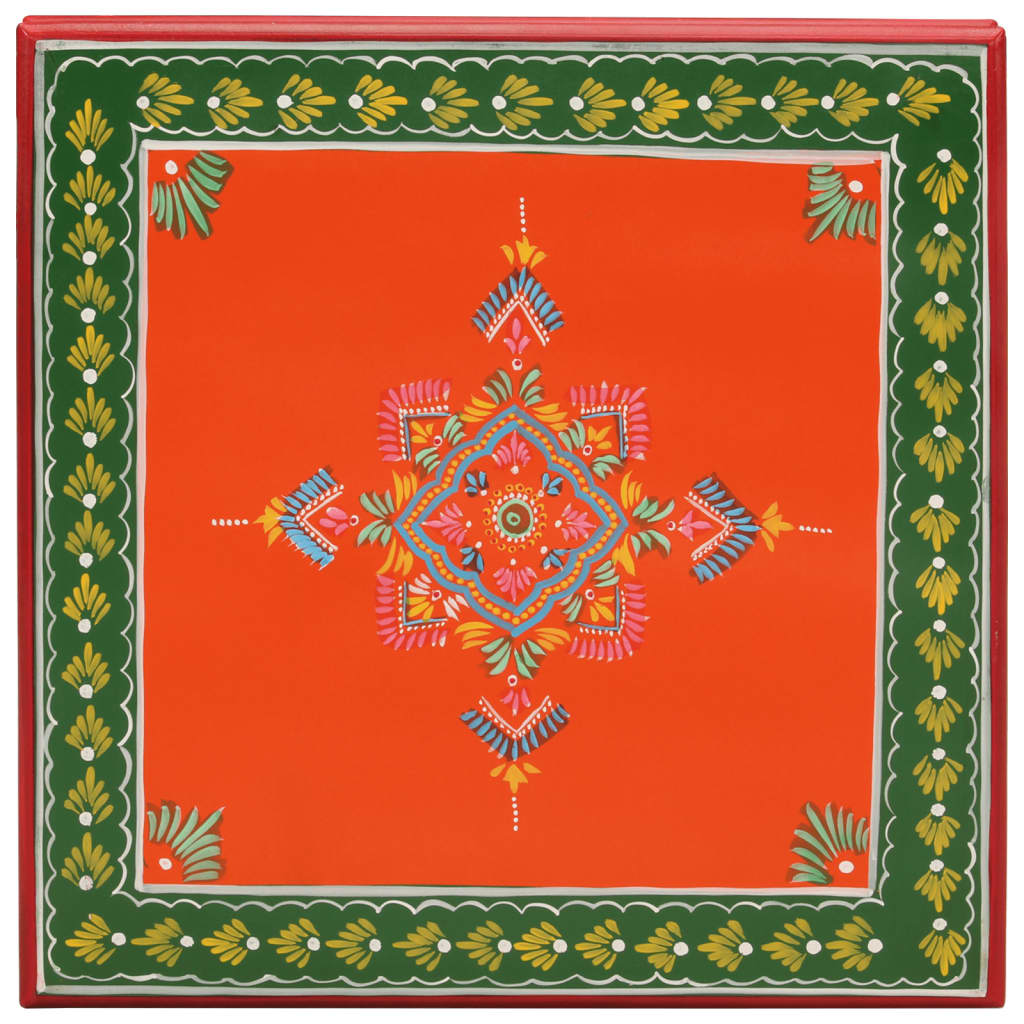 Table basse design artisanal rétro et décoratif en bois de manguier massif peint à la main orange DEC039904