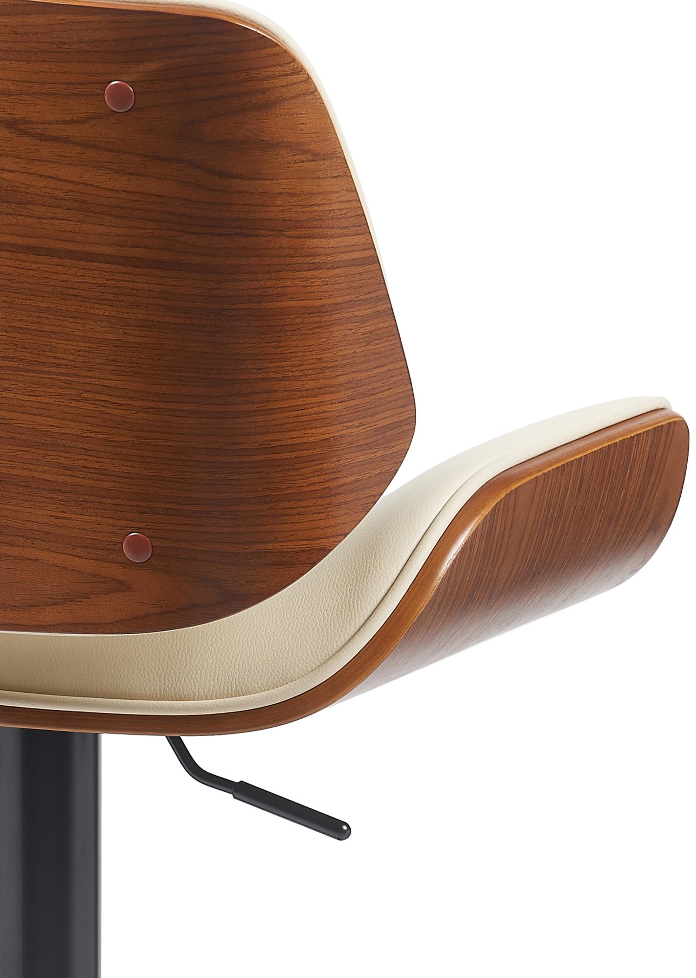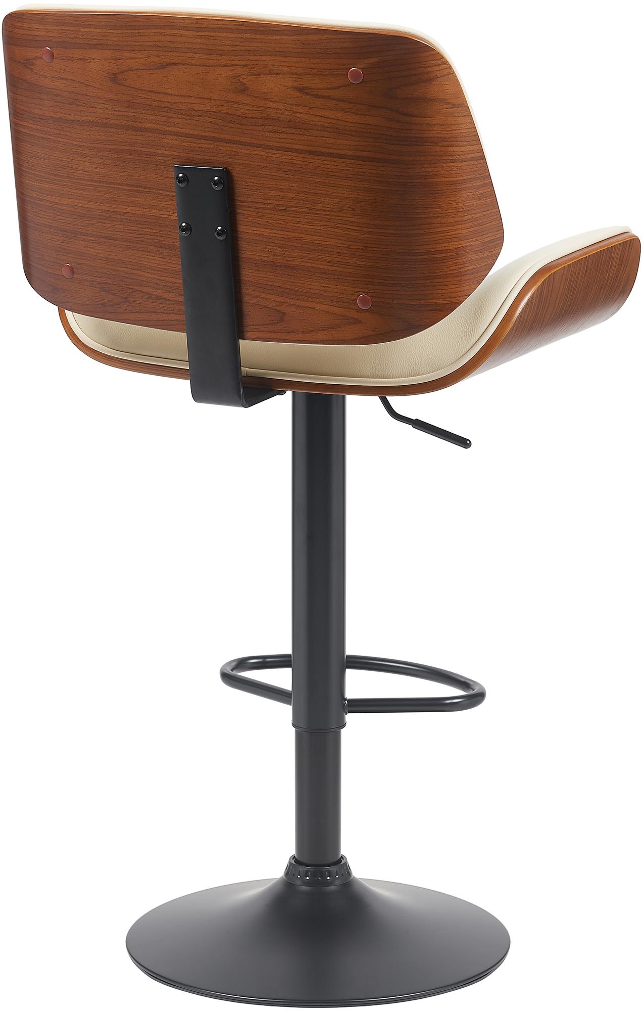Tabouret de bar x1 style moderne rétro en PVC crème assise en bois courbé couleur noyer cadre métal noir 10_0005846