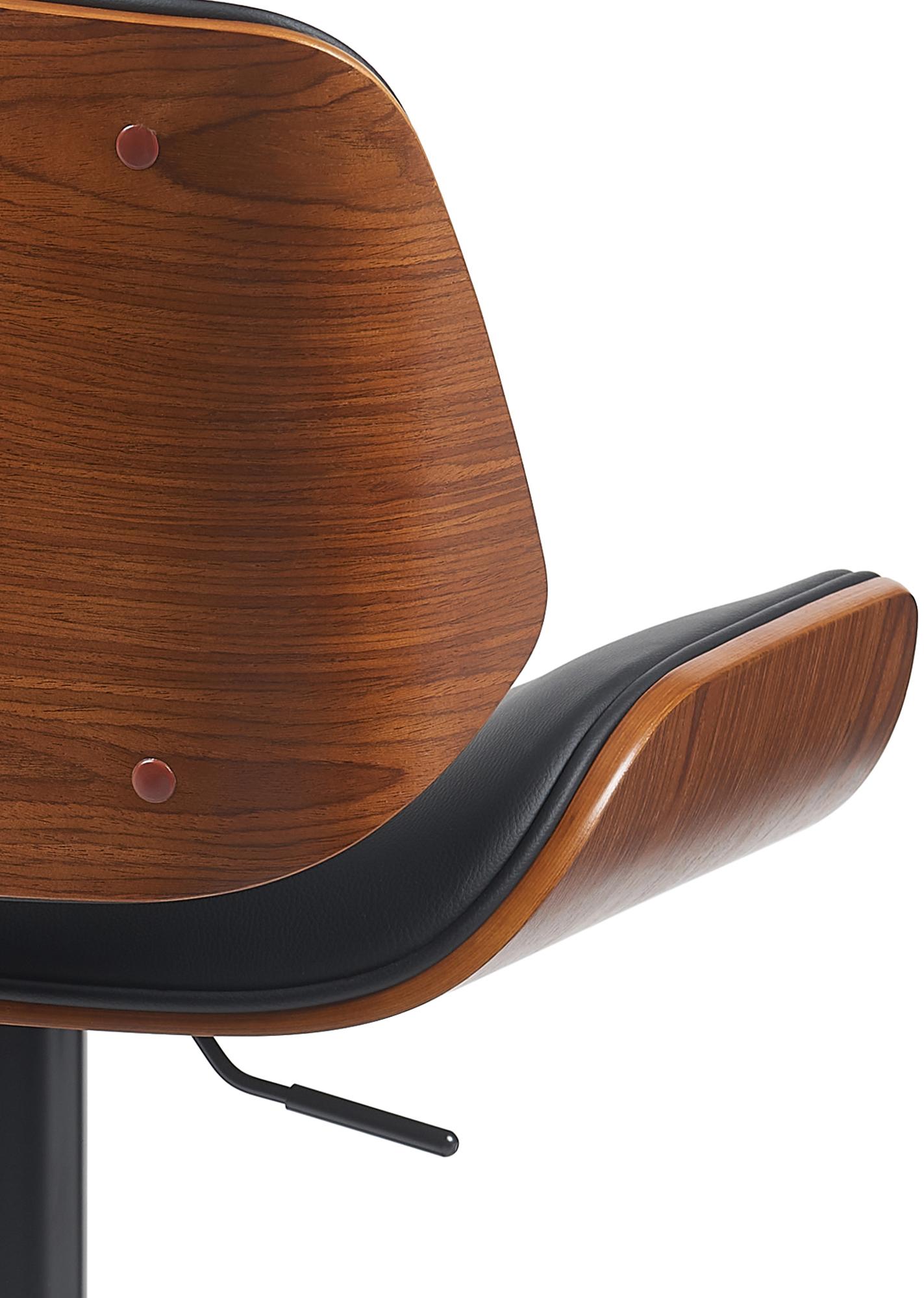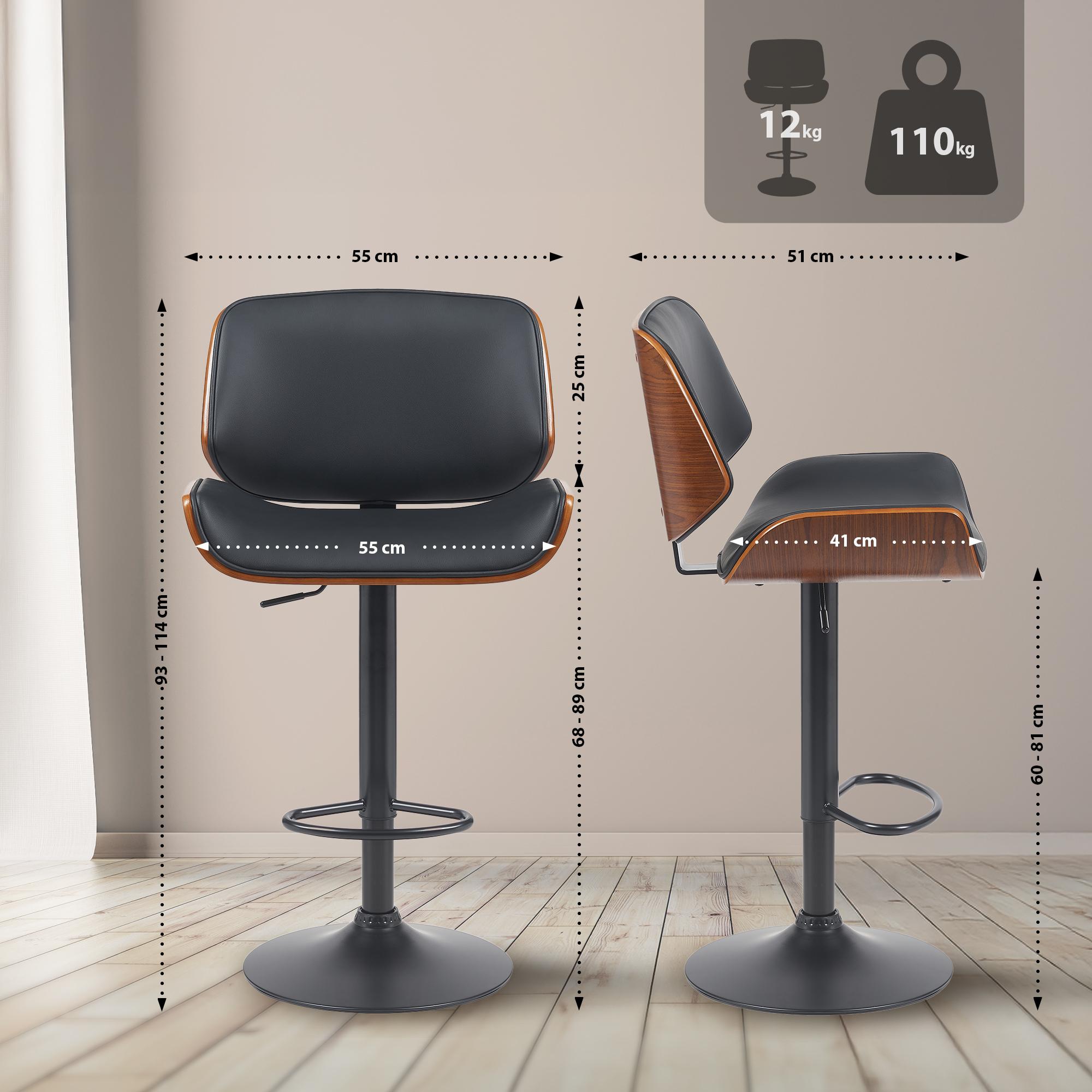 Tabouret de bar x1 style moderne rétro en PVC noir assise en bois courbé couleur noyer cadre métal noir 10_0005594