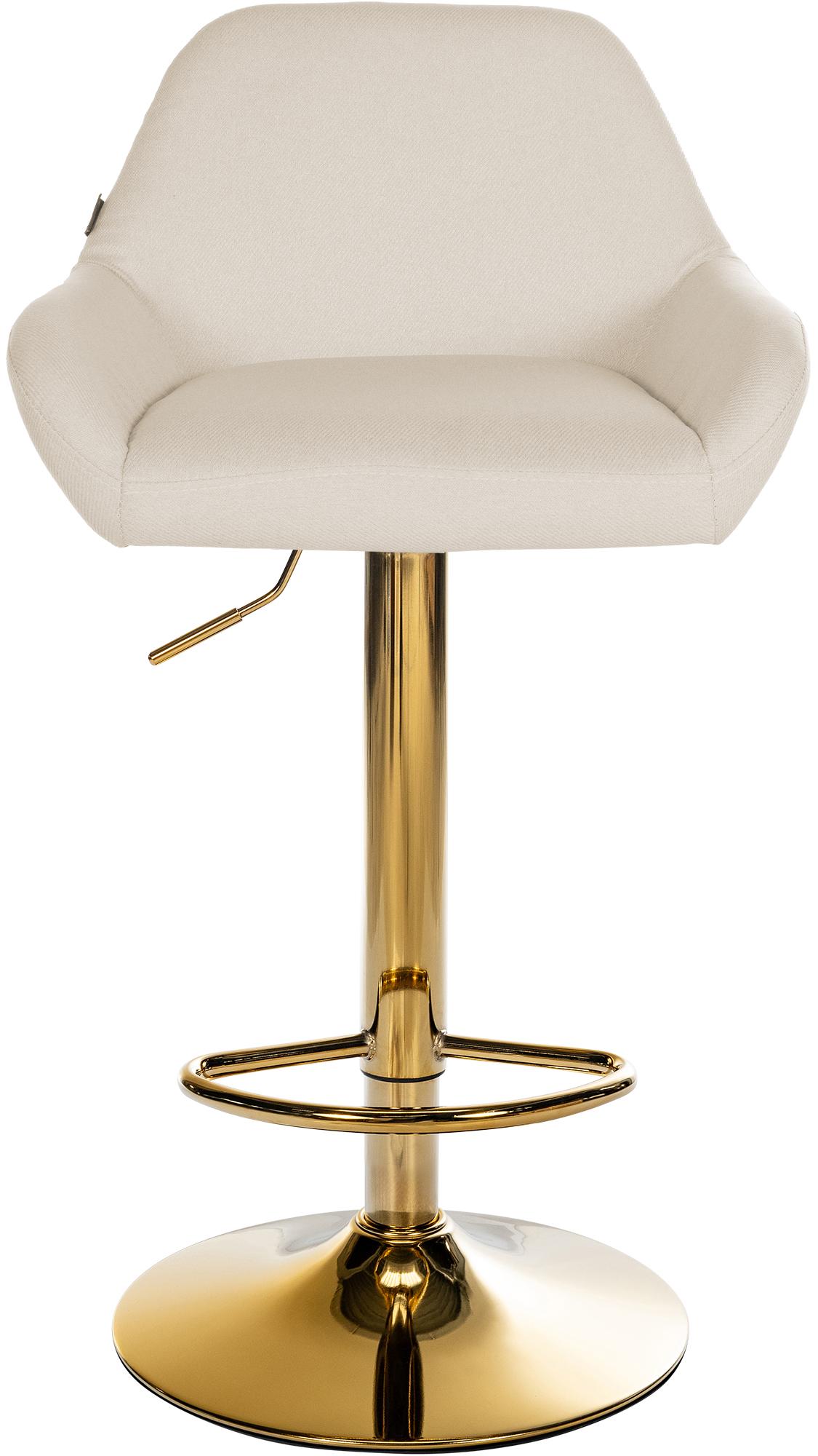 Tabouret de bar x1 avec repose-pieds et accoudoirs en tissu crème piètement en trompette métal doré 10_0005797