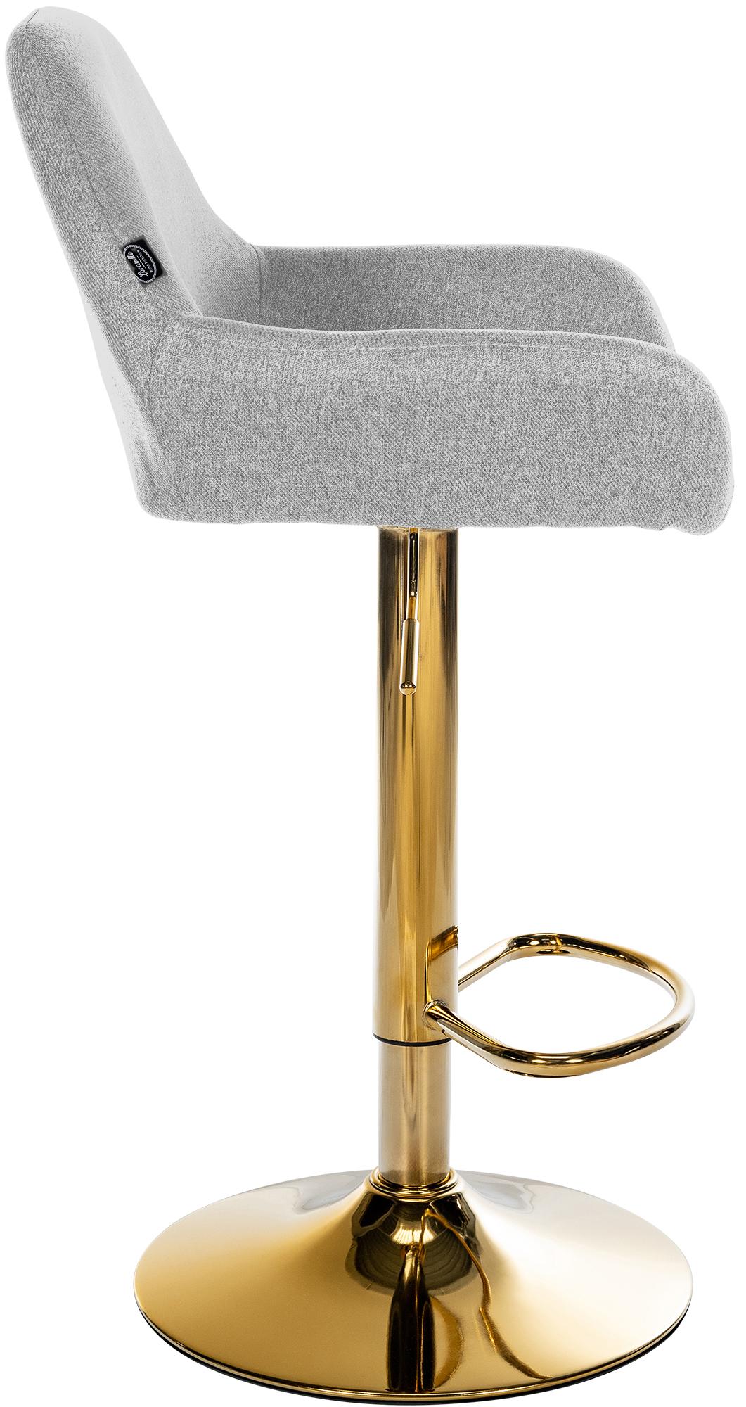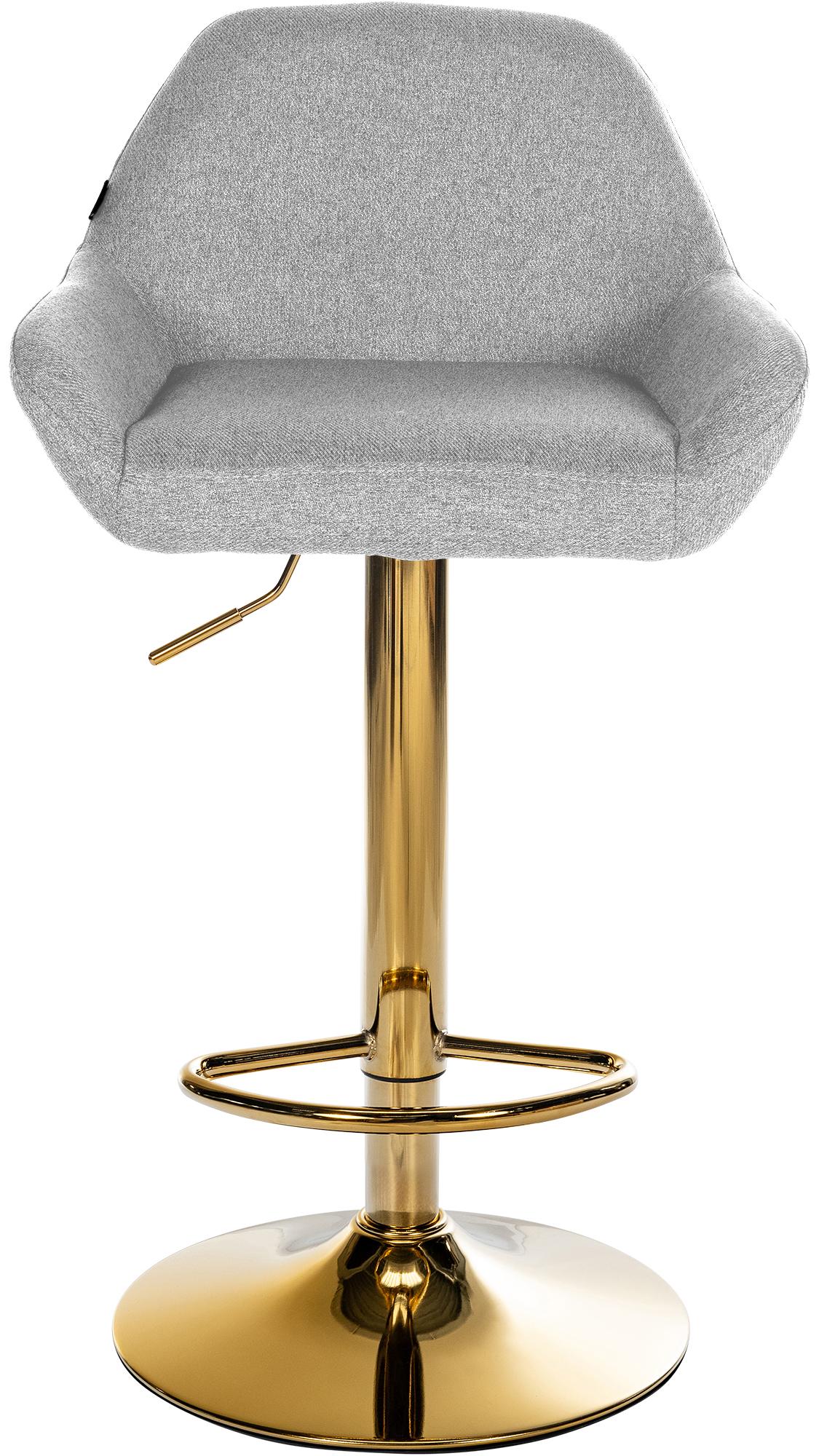 Tabouret de bar x1 avec repose-pieds et accoudoirs en tissu gris piètement en trompette métal doré 10_0005602