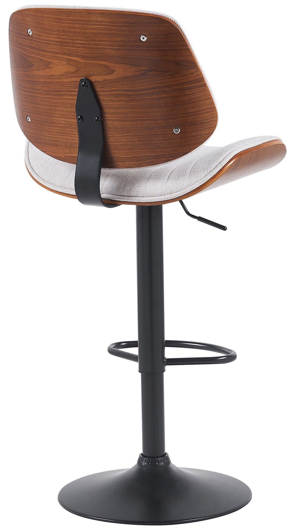 Tabouret de bar x1 style rétro moderne assise en tissu blanc bois noyer et cadre métal noir 10_0006267