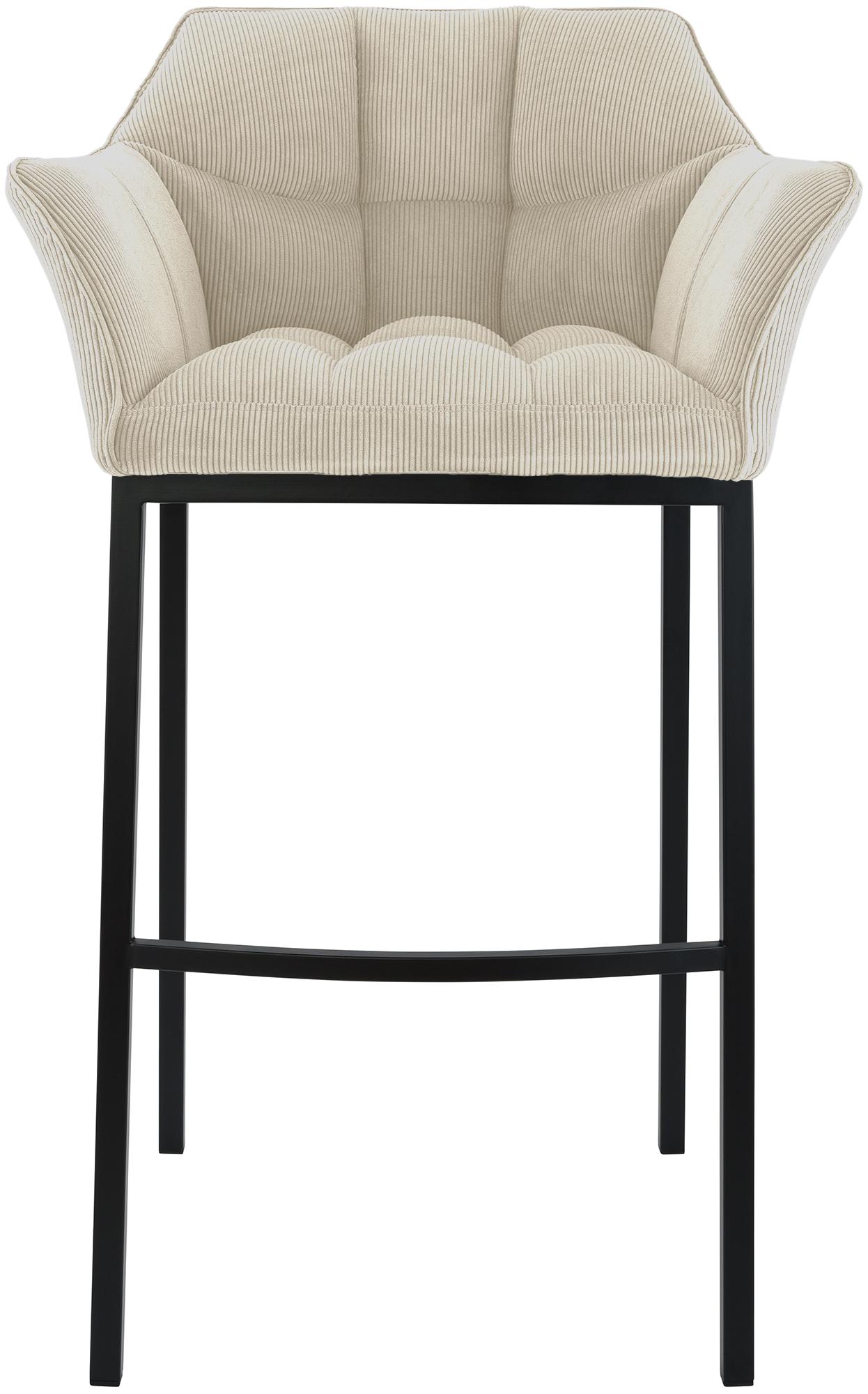 Tabouret de bar x1 assise enveloppante capitonnée en velours côtelé crème avec structure à 4 pieds en métal noir 10_0005893