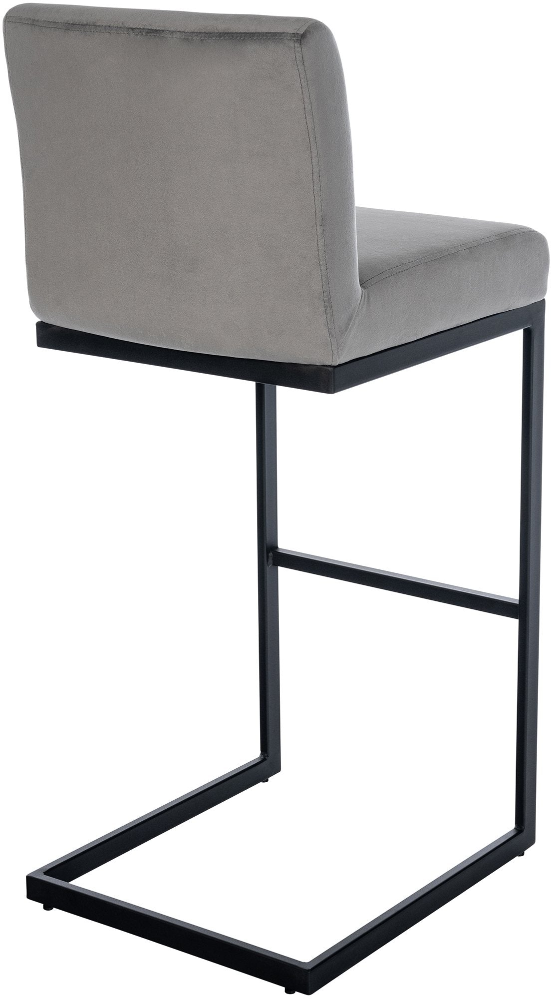 Tabouret de bar x1 avec dossier pieds en forme de luge en métal noir assise en velours gris 10_0005878