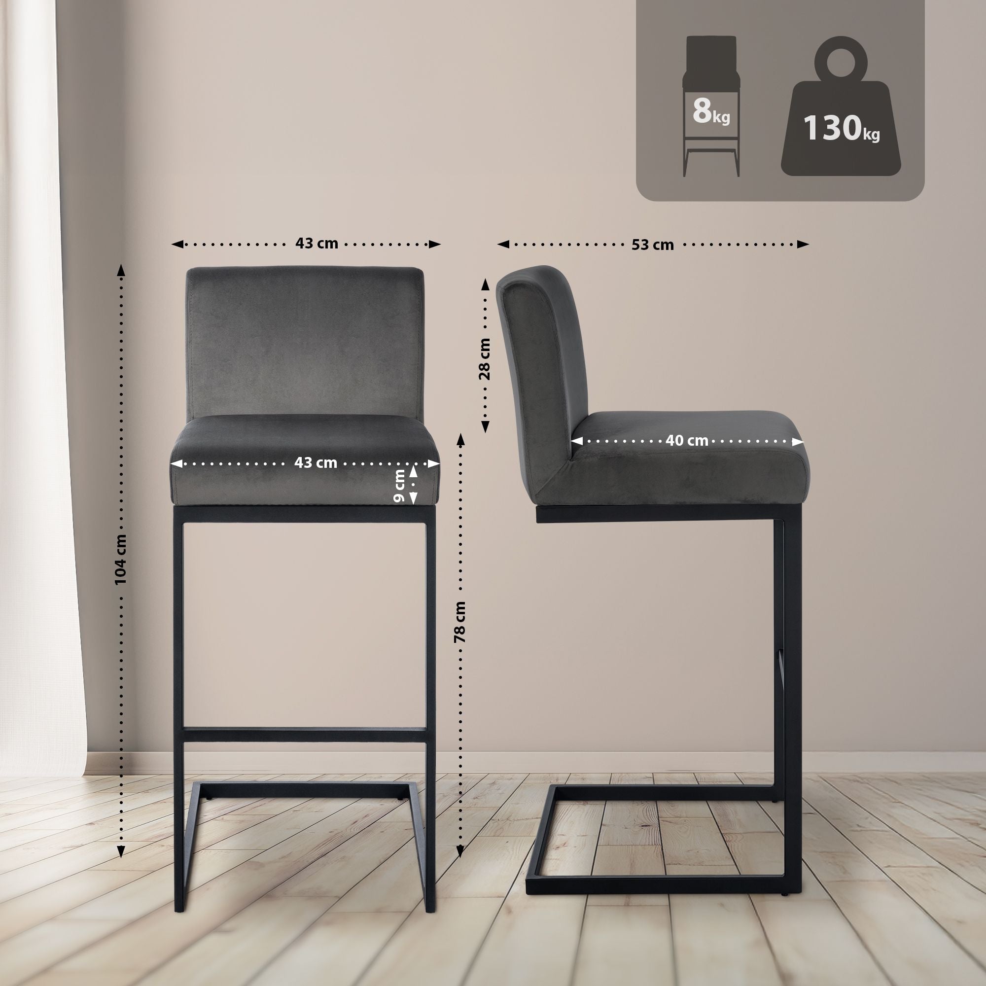 Le tabouret de bar allie design moderne et confort d'assise. Ce tabouret de bar est parfait pour un usage domestique et professionnel, dans les cuisines, les salles à manger, les bars à domicile et bien plus encore.