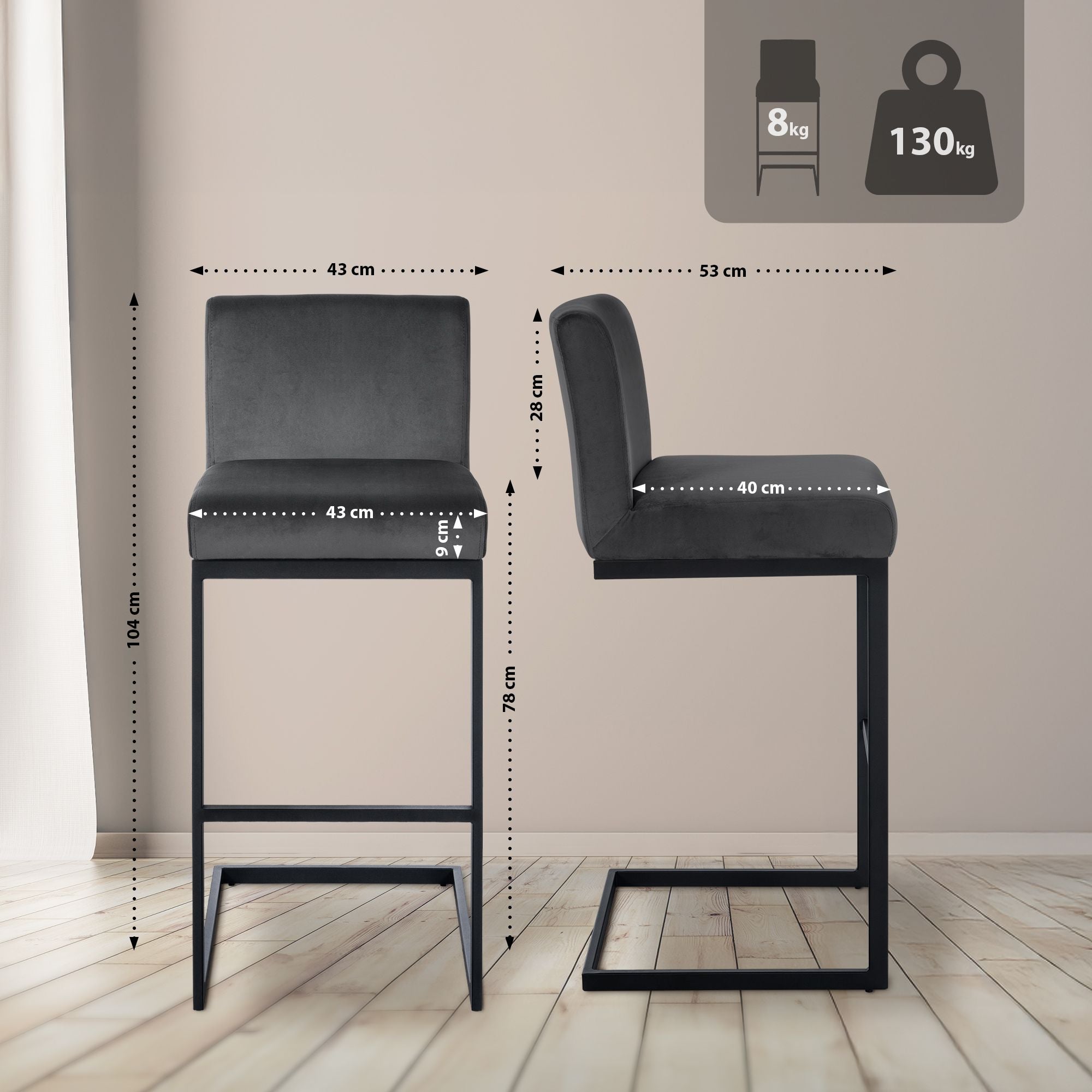 Le tabouret de bar allie design moderne et confort d'assise. Ce tabouret de bar est parfait pour un usage domestique et professionnel, dans les cuisines, les salles à manger, les bars à domicile et bien plus encore.