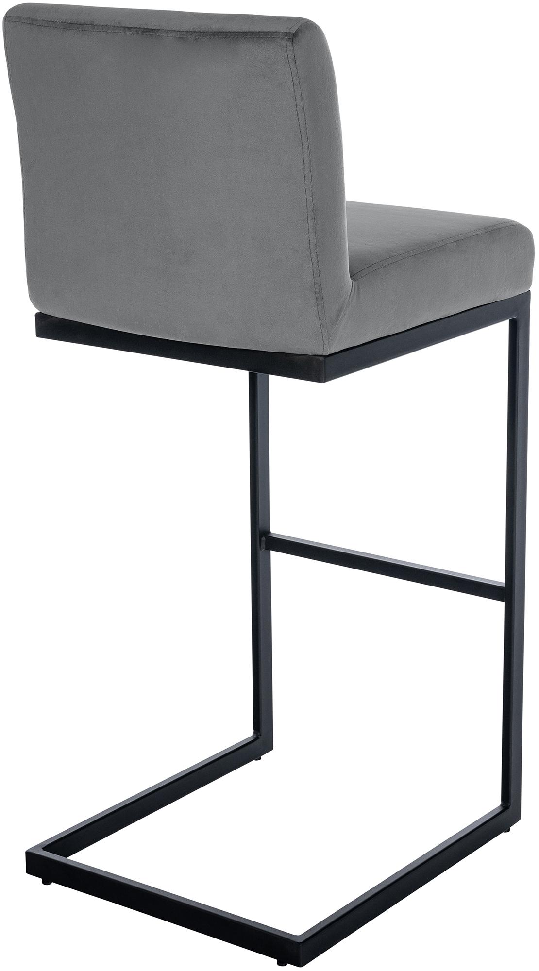Tabouret de bar x1 avec dossier pieds en forme de luge en métal noir assise en velours gris foncé 10_0005808
